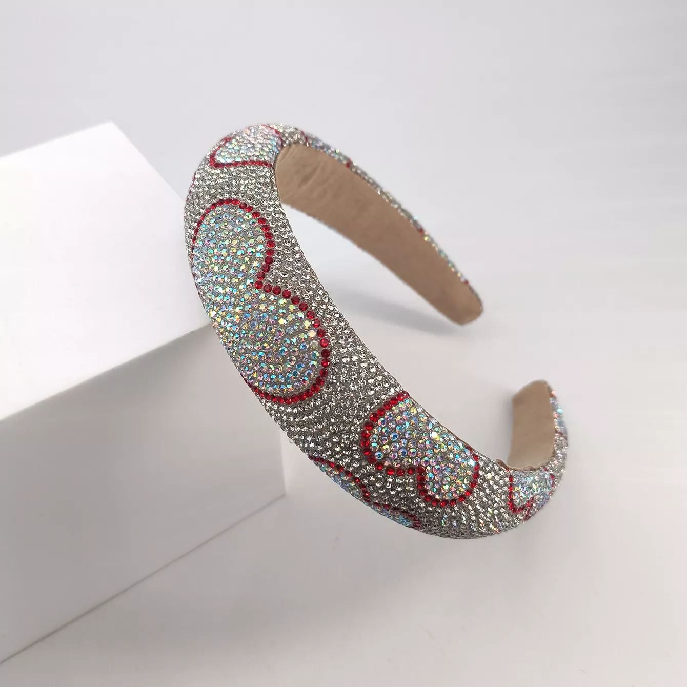 This headband is crafted from durable plastic, ensuring a lightweight yet sturdy fit that stays comfortably in place all day long. The centerpiece is a finely detailed heart pattern adorned with colorful rhinestones that catch the light from every angle, giving you a radiant, eye-catching glow. Its unique Baroque-inspired design combines classic romance with modern fashion, making it perfect for a variety of styles and occasions.
