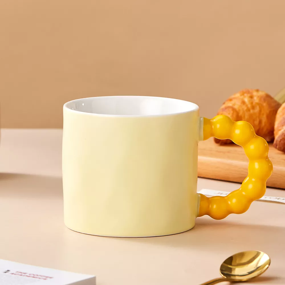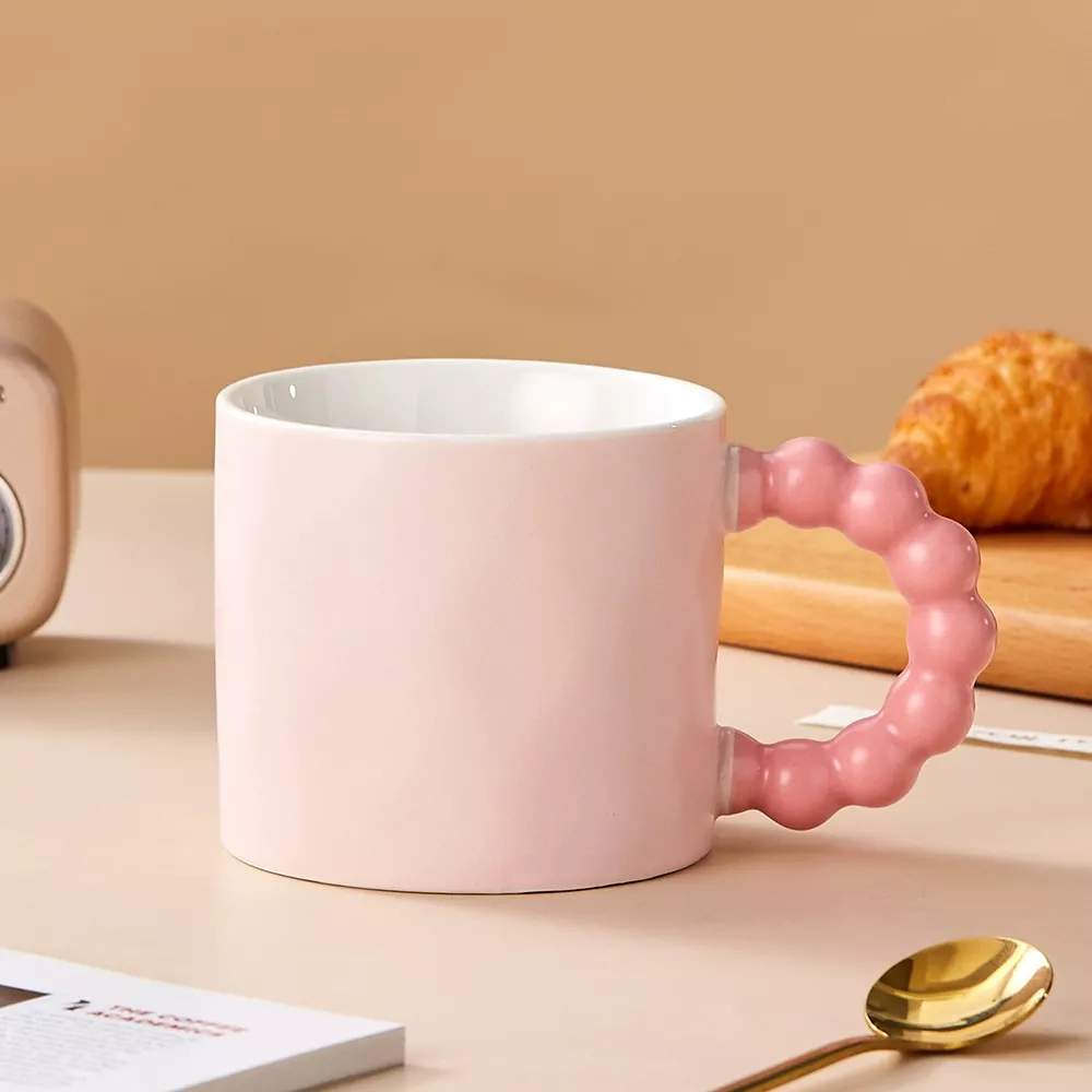 Turn every sip into a moment of elegance with this ceramic coffee mug featuring a unique pearl-style handle. Crafted for style and ease, this beautifully designed mug is more than just drinkware—it’s an experience. Whether you’re starting your morning with warm coffee, enjoying an afternoon tea, or serving up milk with dessert in your bakery or home, this mug brings a touch of charm and refinement to your daily routine. Its simple yet graceful look fits seamlessly into both modern and vintage-inspired settings.