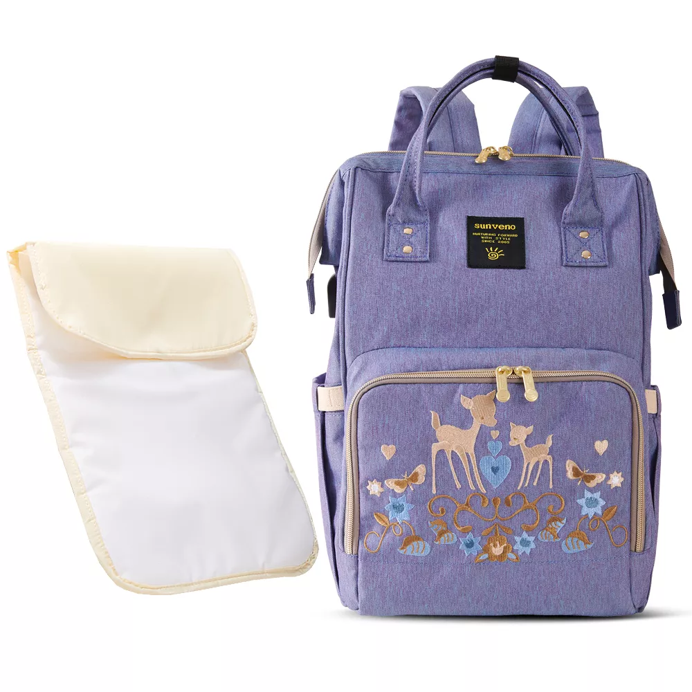 Elegant Purple Embroidered Diaper Backpack