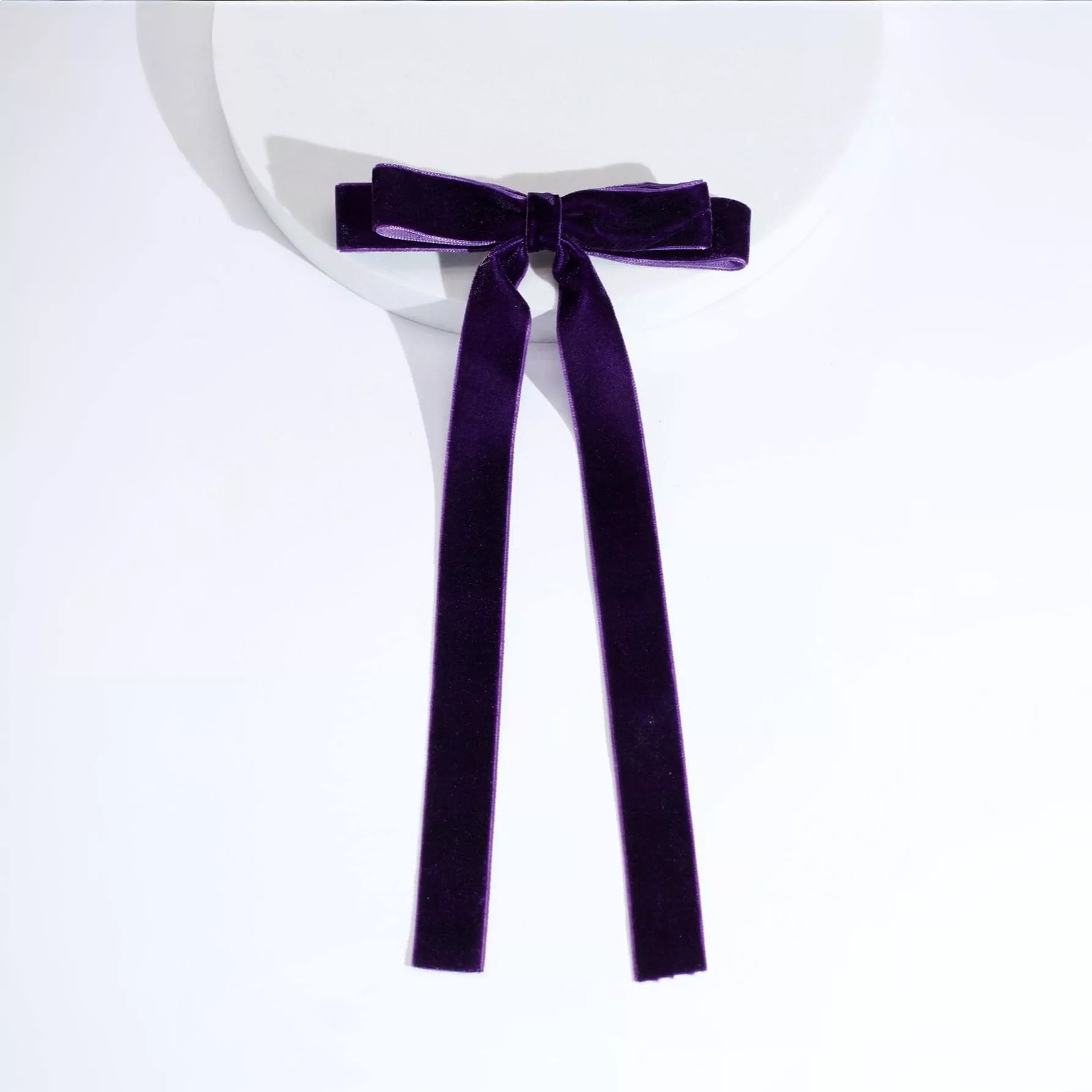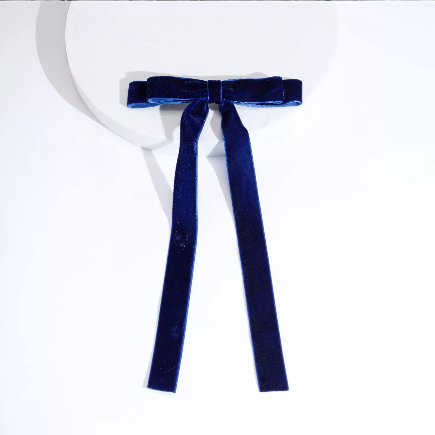 Elegant Velvet Hair Bow with Long Ribbon – Fashion Hair Clip for Women