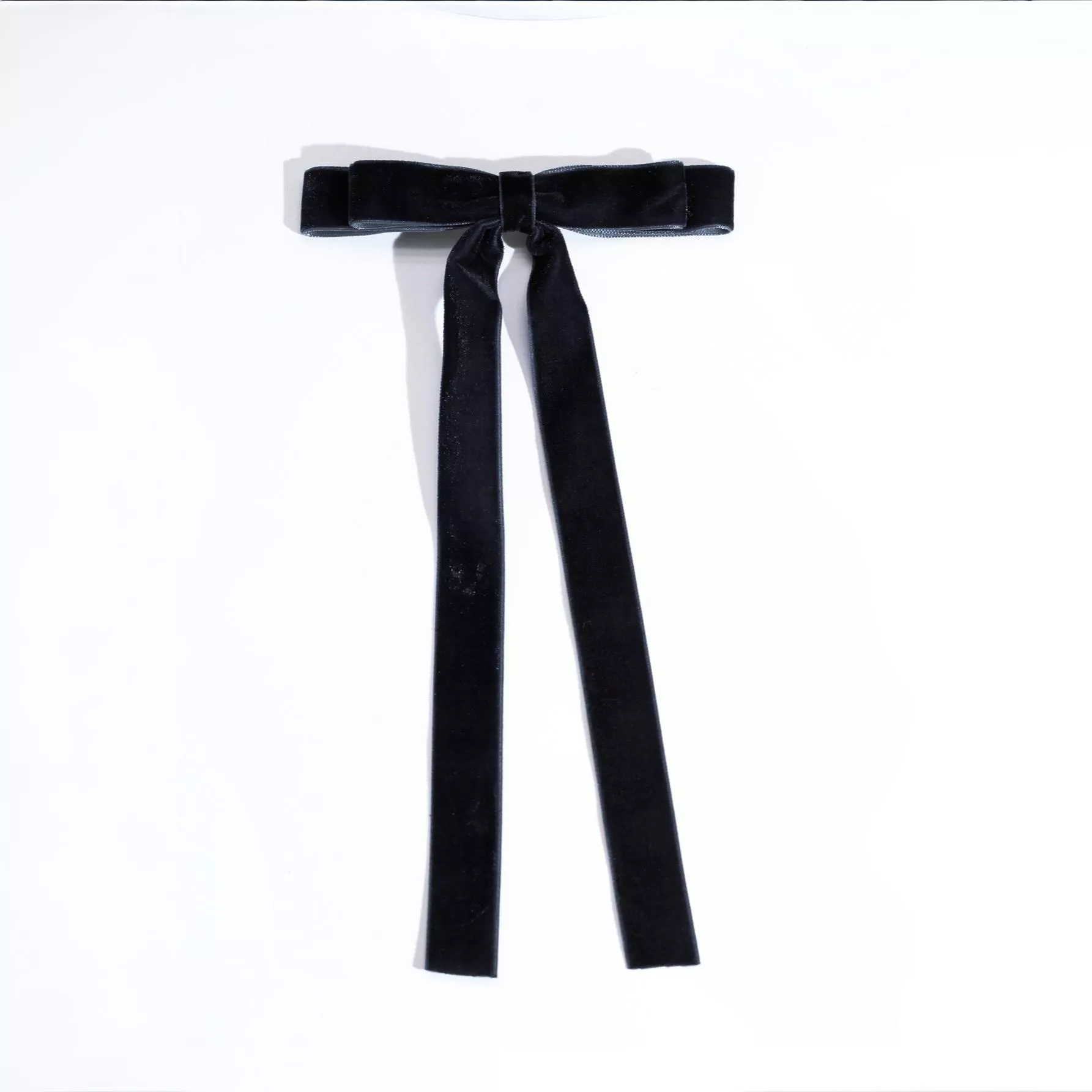 Featuring a luxurious black velvet fabric, the bow is designed with long trailing ribbons that drape beautifully down your hair. The secure clip makes it easy to style in seconds — just slide it in for an instant upgrade to your hairstyle. From loose waves to sleek ponytails and elegant buns, it adds a sophisticated flair to any look.