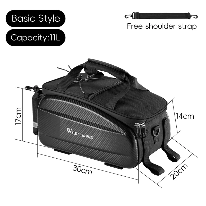 This trunk bag is made for serious cyclists and casual riders alike. It’s ideal for mountain biking, touring, bikepacking, or even quick grocery runs. Mounted on your bike’s rear rack, it stays stable and secure, keeping your load balanced and your back free. The carbon fiber-inspired texture adds a touch of modern elegance, while the streamlined design ensures you stay aerodynamic on every trip.