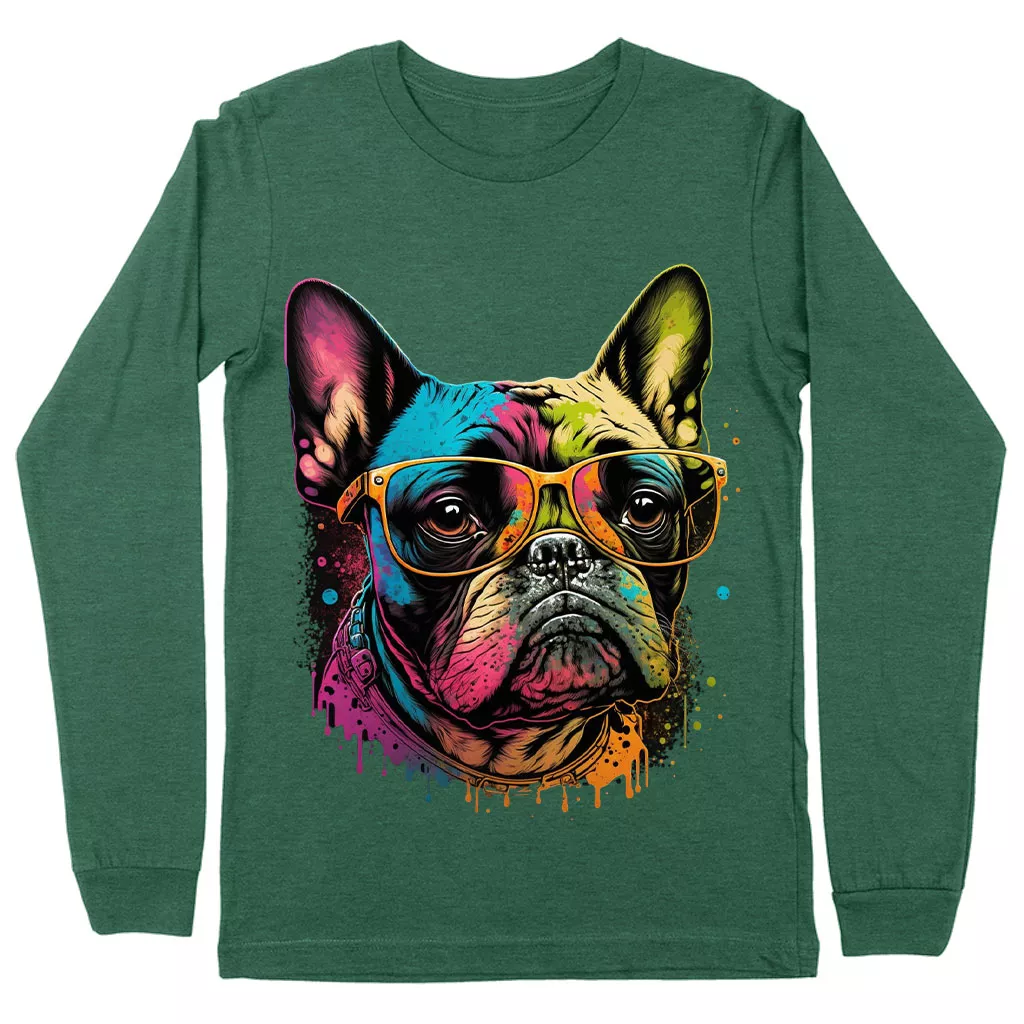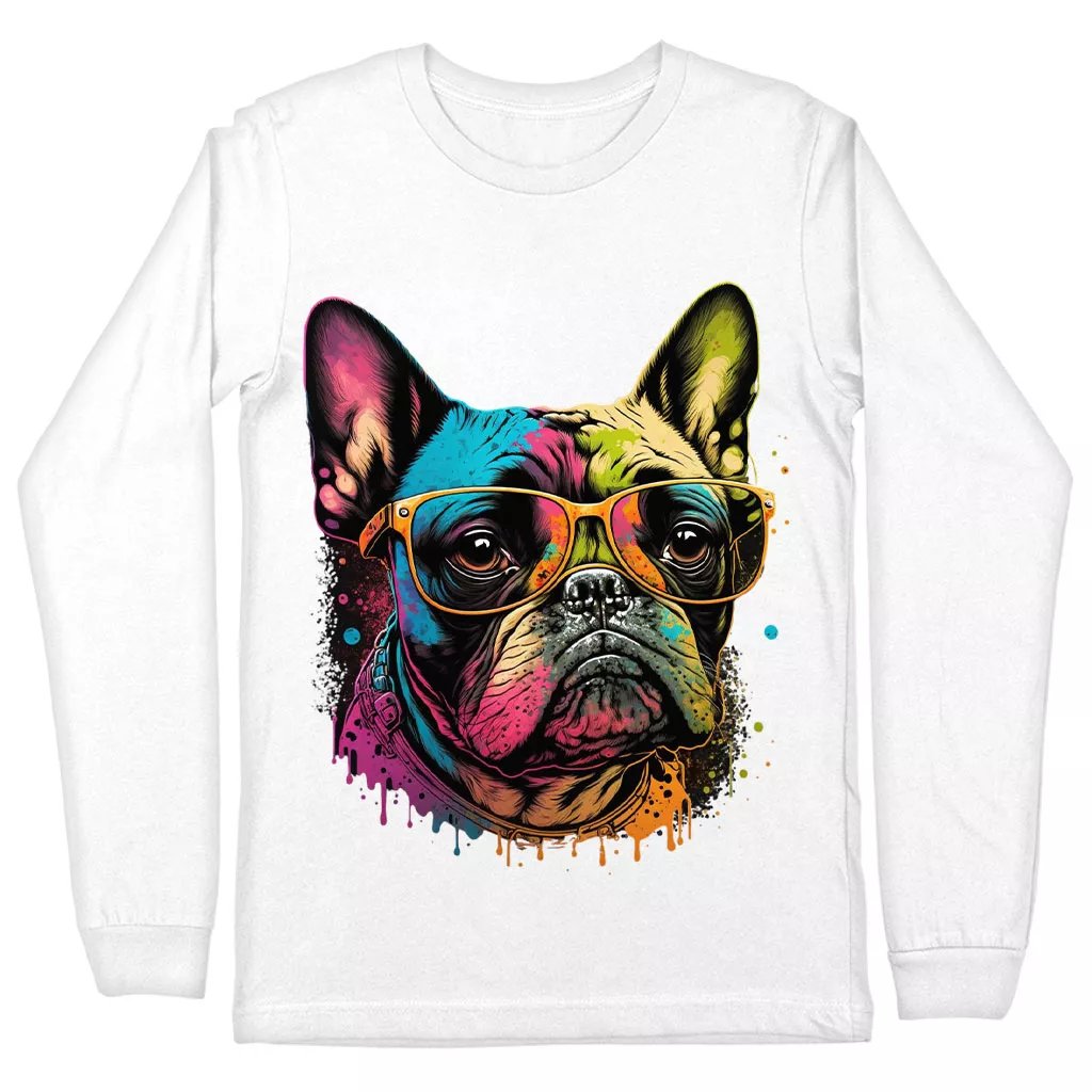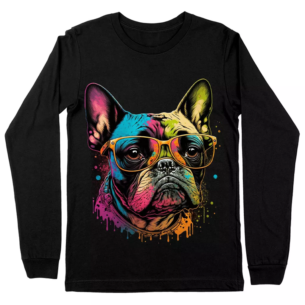 French Bulldog Long Sleeve T-Shirt – Dog With Glasses T-Shirt – Colorful Long Sleeve Tee