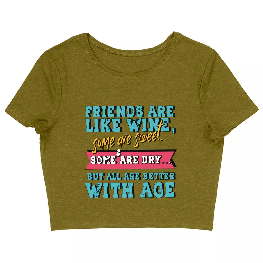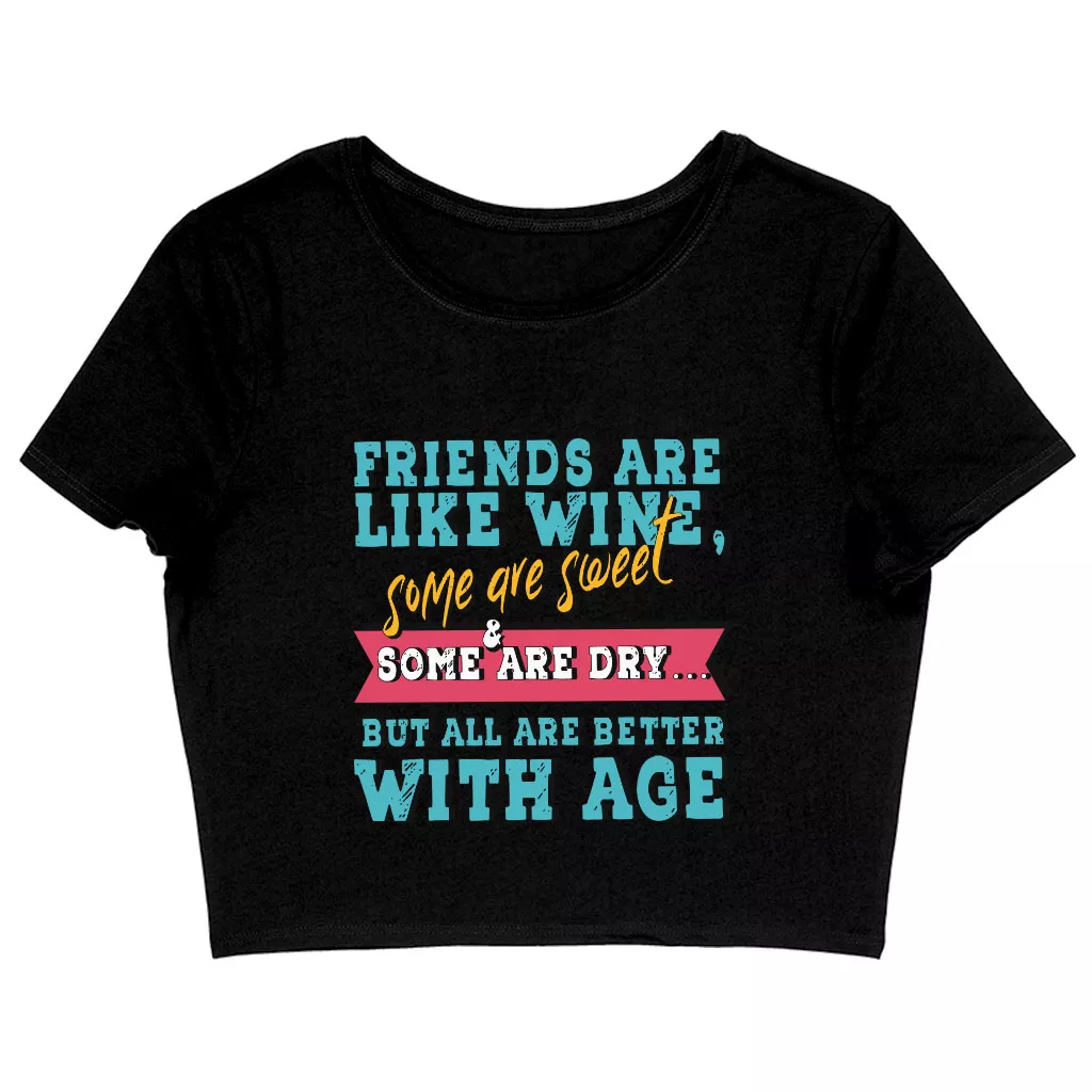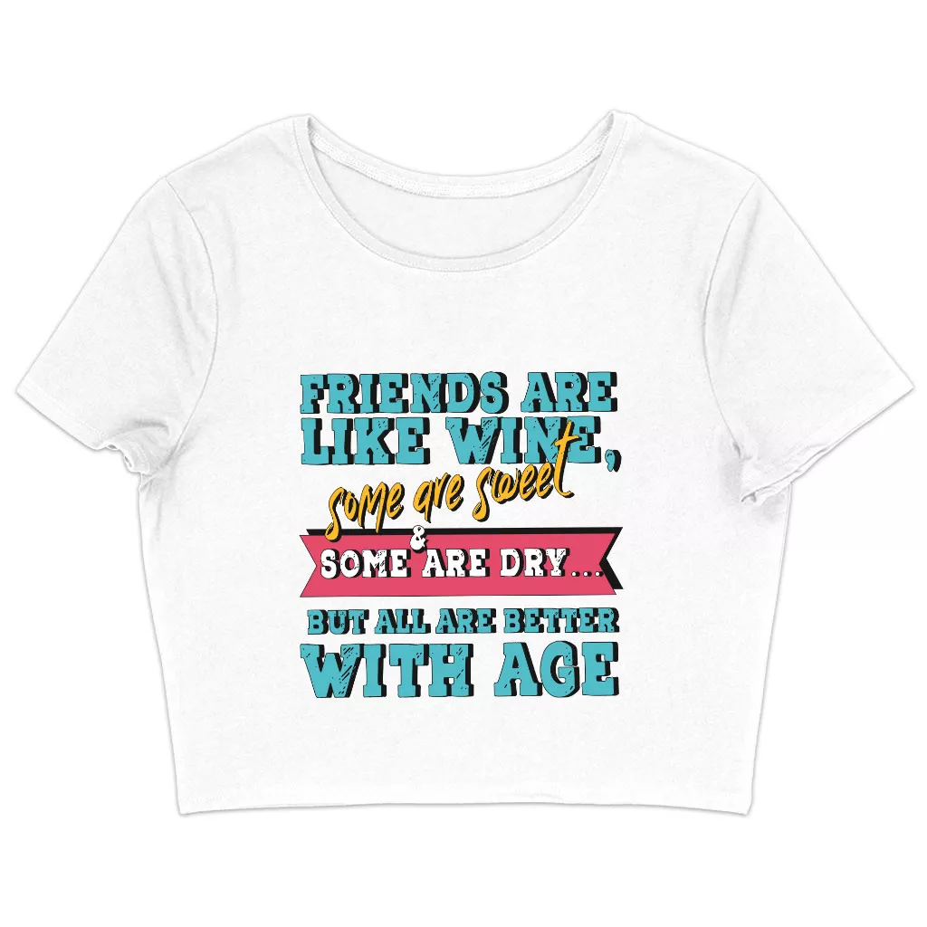 Friends and Wine Women’s Cropped T-Shirt – Quotes Crop Top – Funny Cropped Tee