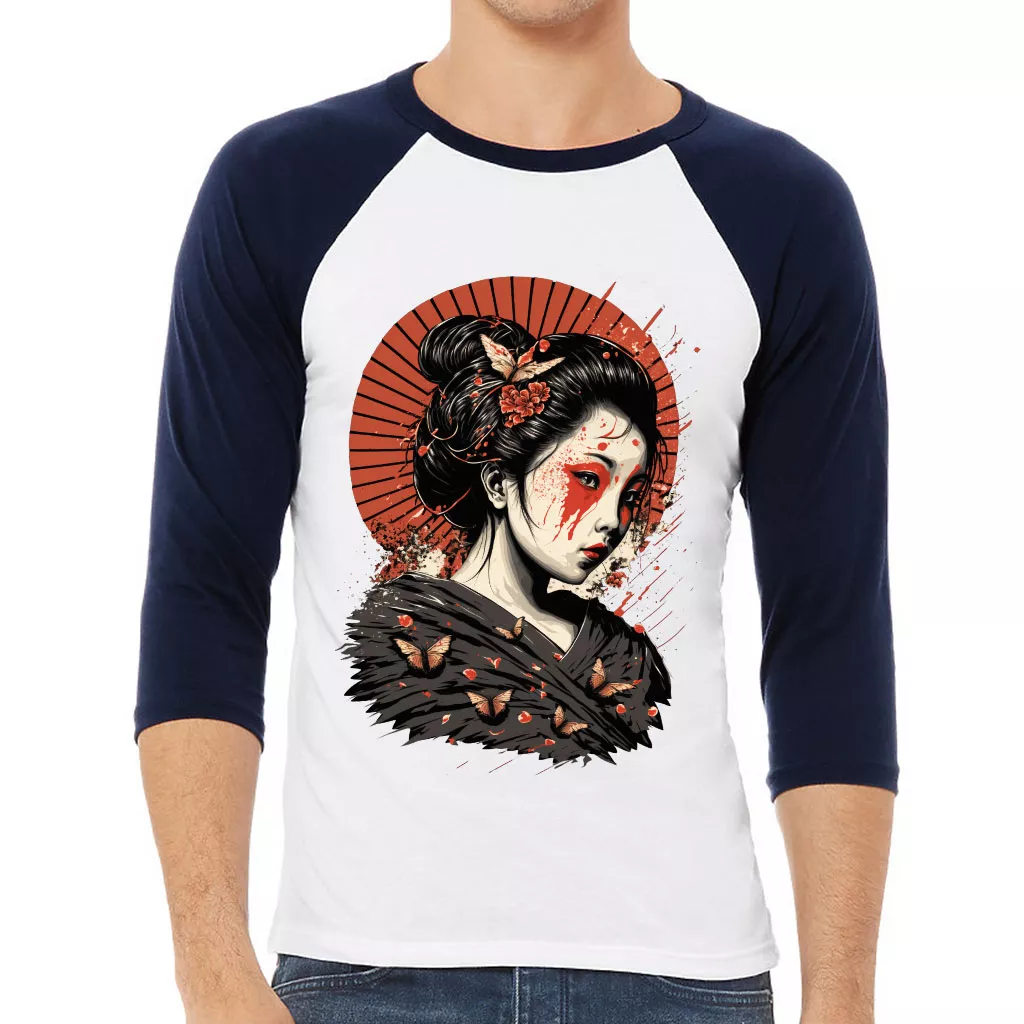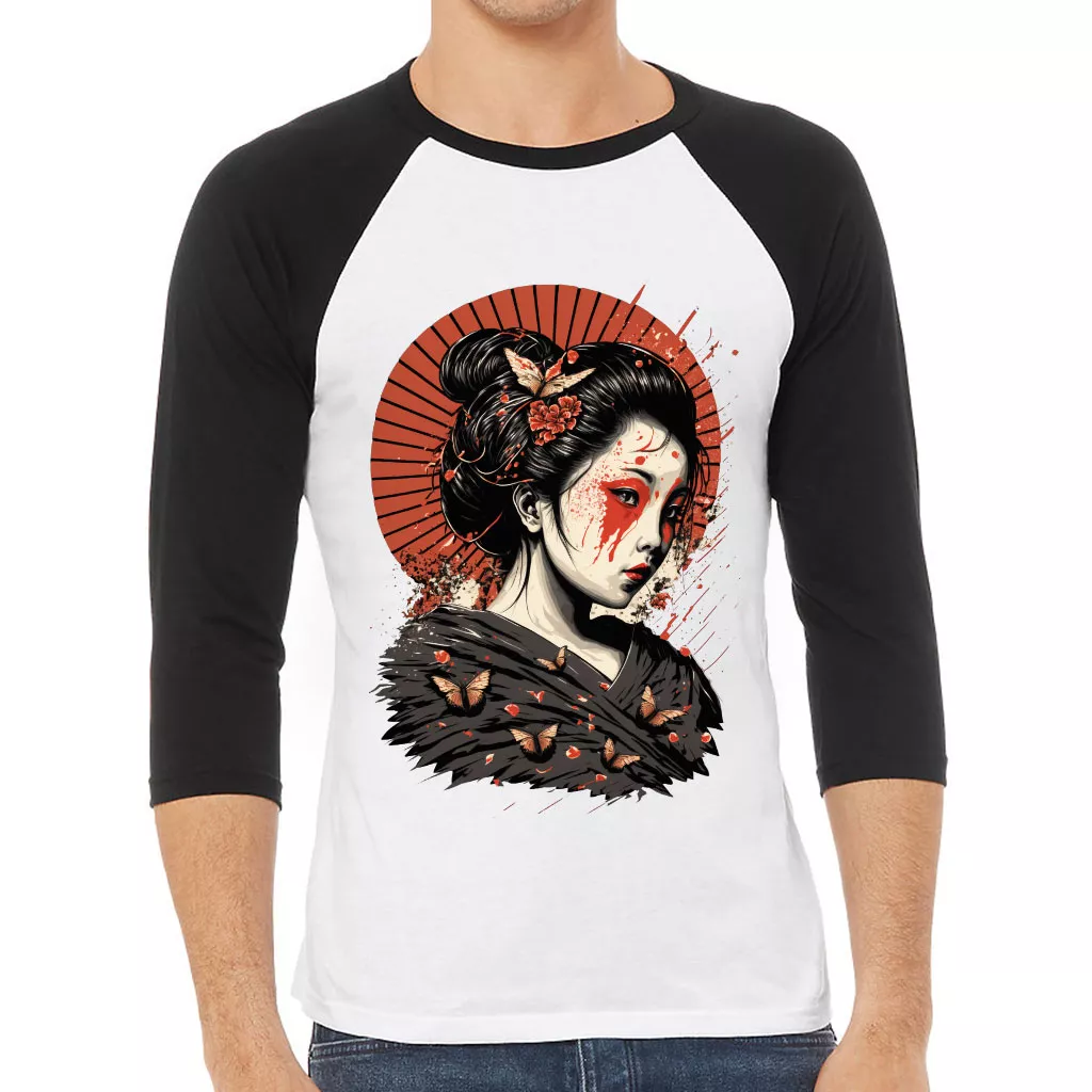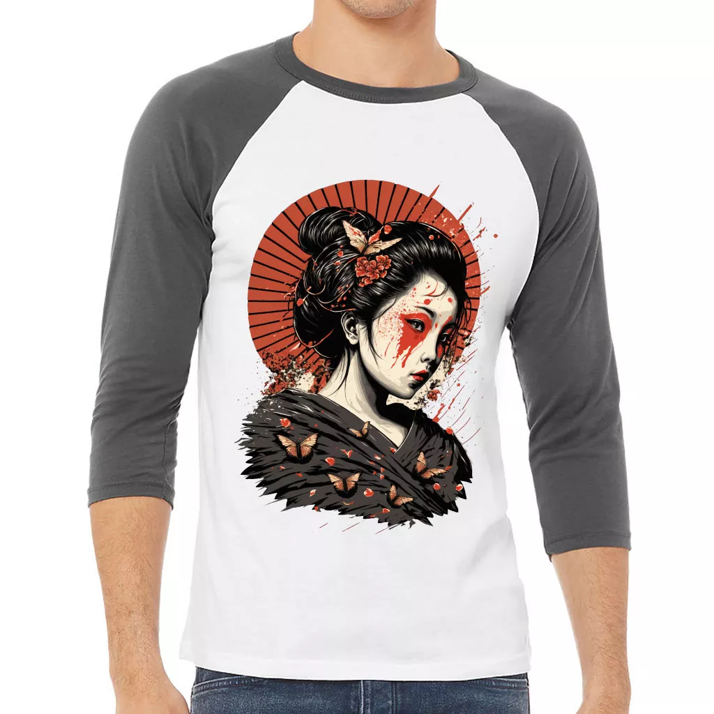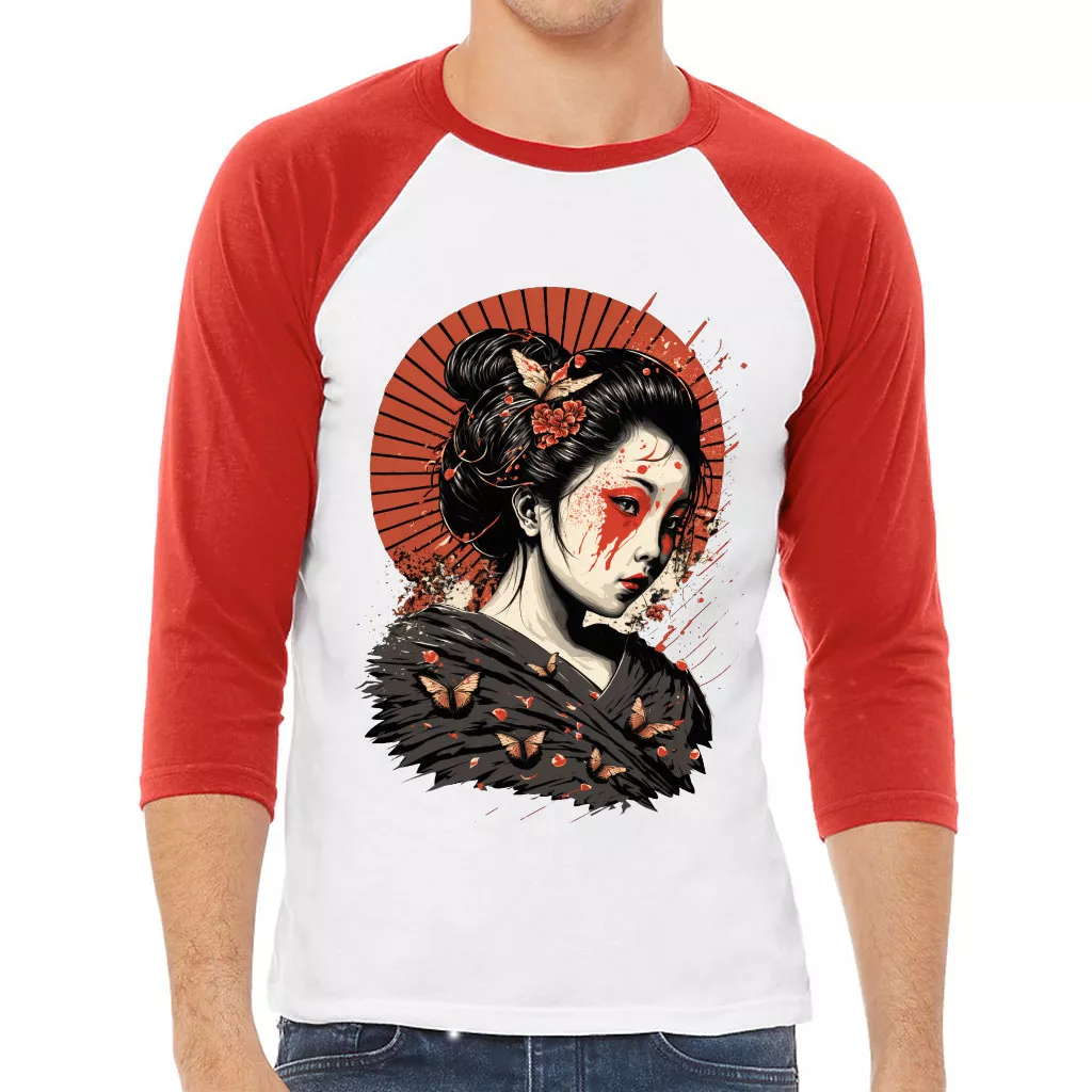 Geisha Baseball T-Shirt – Japanese Art T-Shirt – Printed Baseball Tee