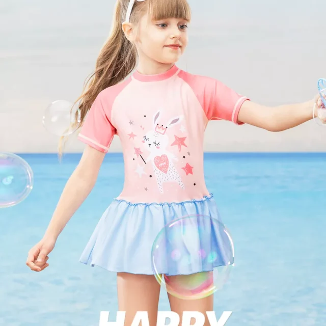 Let your little girl make a splash in style with this charming one-piece swimsuit featuring a playful skirt design and vibrant cartoon patterns. Designed with comfort and fun in mind, this cute swimsuit is the perfect choice for beach days, pool parties, and water park adventures. With quick-drying fabric, UPF 50+ sun protection, and a stretchy fit that moves with your child, this swimwear is not only stylish but also safe and practical.
