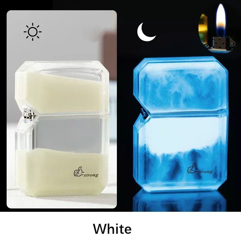 Crafted with creativity and precision, this lighter combines utility with trend-setting aesthetics. The internal quicksand effect offers a calming, almost hypnotic visual, while the luminous exterior glows softly in the dark—making it easy to find at night or in dim environments. Its open flame is powered by kerosene, making it a reliable choice for both everyday use and special moments.