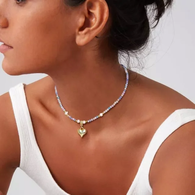 I absolutely love this necklace! It's incredibly pretty. The beads sparkle, and the gold heart is the perfect size. I appreciate that it's closer to a choker length, making it suitable for almost any outfit. The color is perfect.