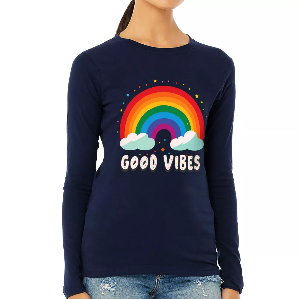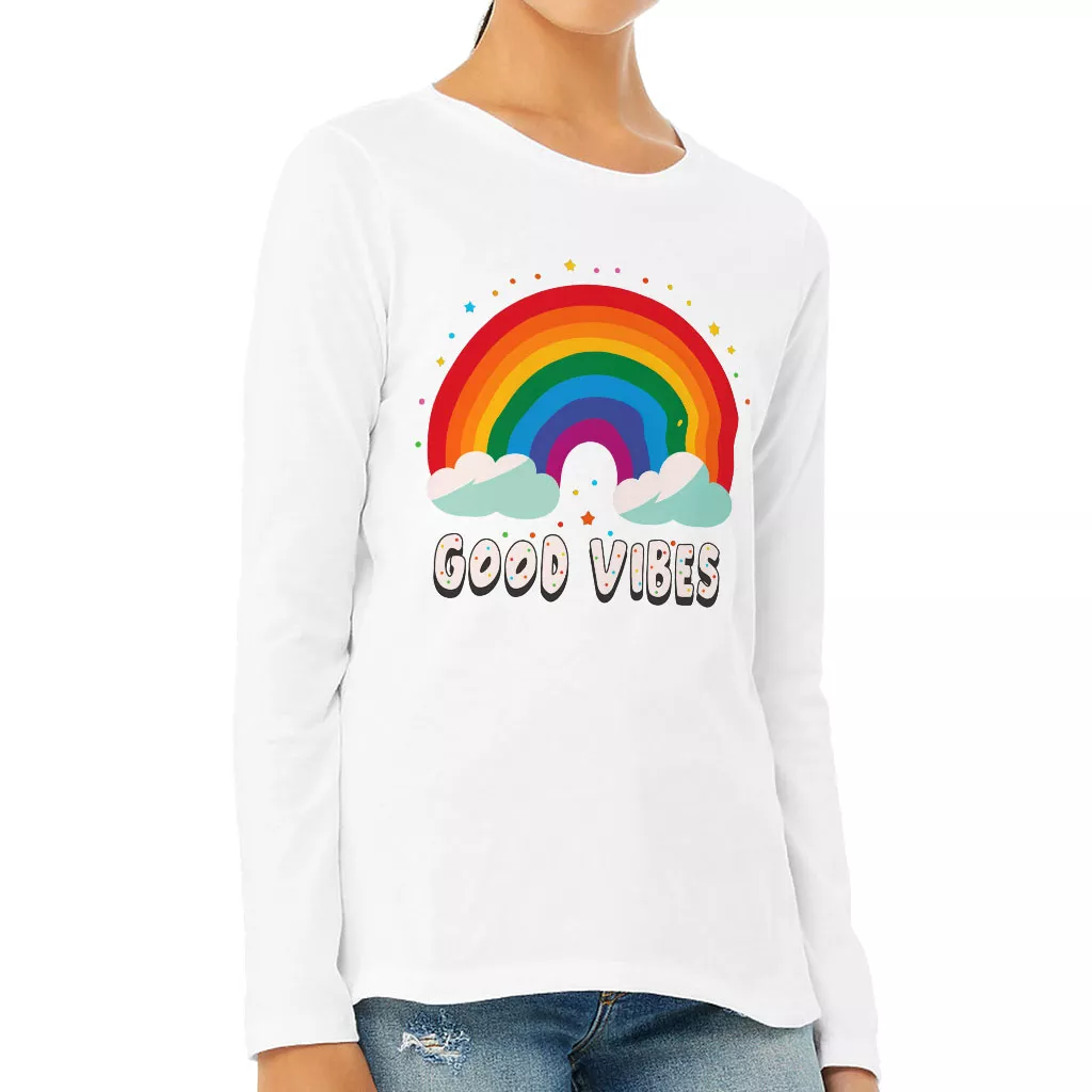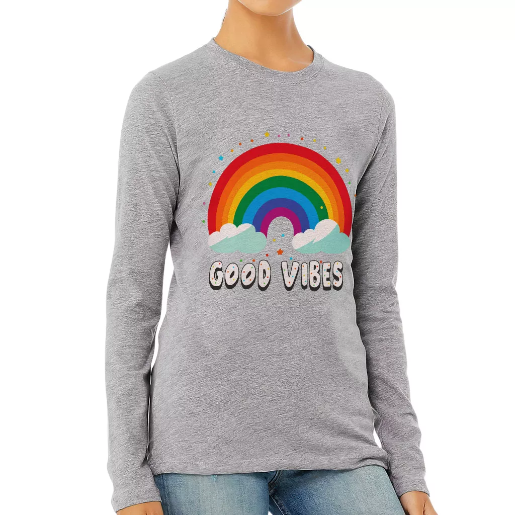 Good Vibes Women’s Long Sleeve T-Shirt – Rainbow Long Sleeve Tee – Colorful T-Shirt