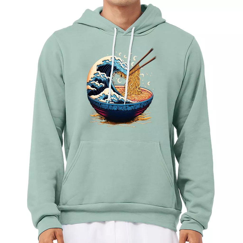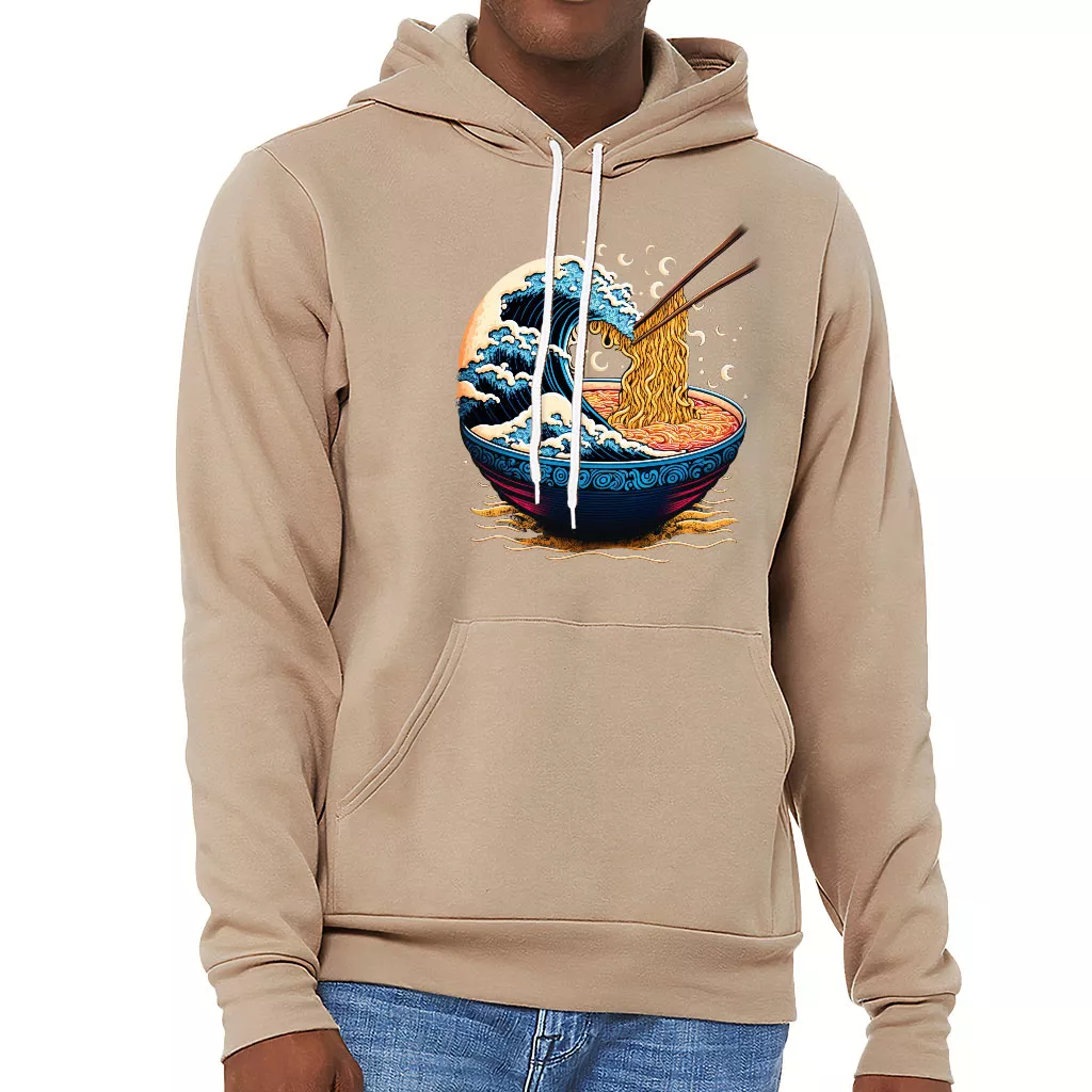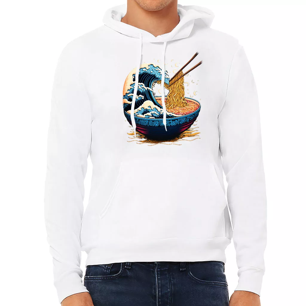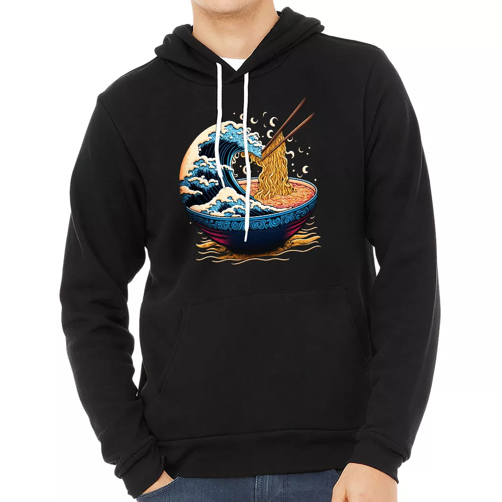 Great Ramen Wave Sponge Fleece Hoodie – Cool Graphic Hoodie – Food Hooded Sweatshirt