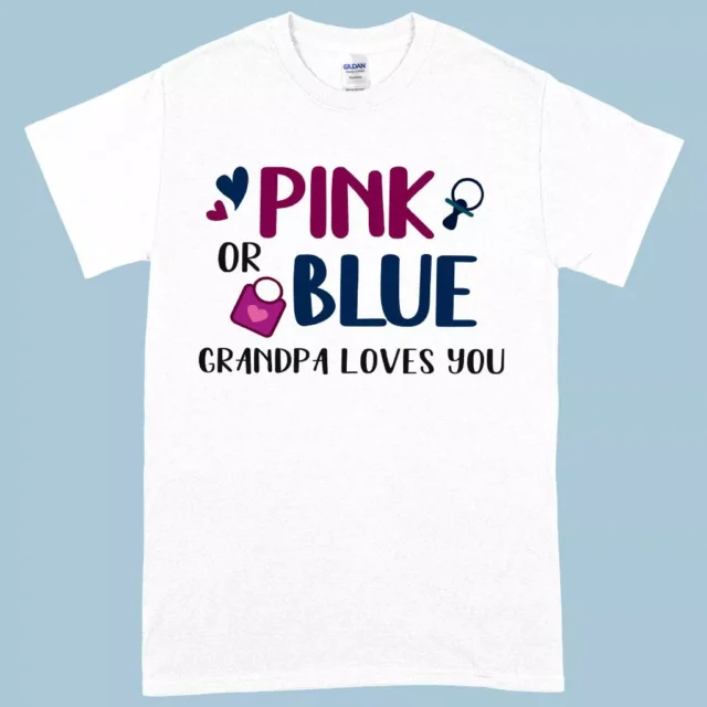 Heavy Cotton Pink or Blue Your Grandpa Loves You T-Shirt – Gender Reveal T-Shirts for Grandparents – T-Shirts for Grandpa