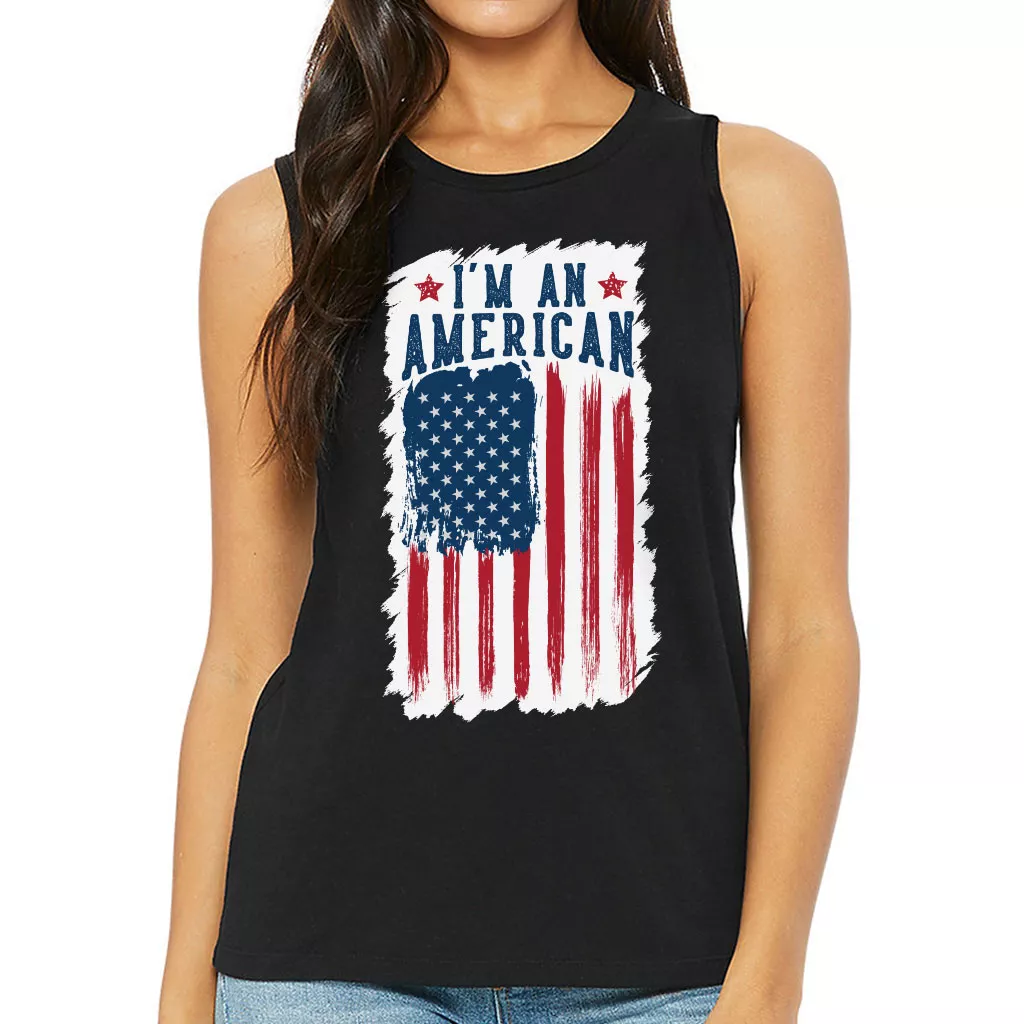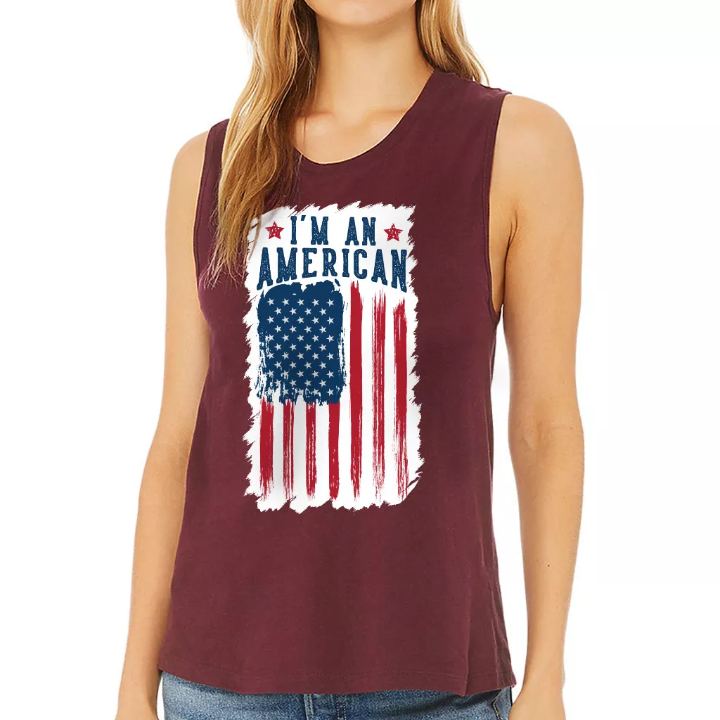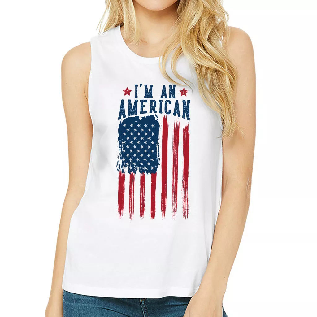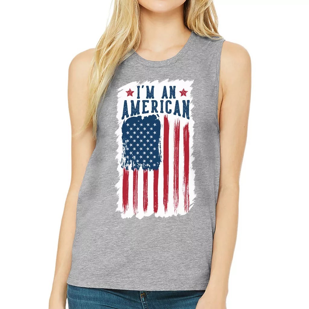 I am an American Women’s Muscle Tank – USA Flag Tank Top – Patriotic Workout Tank
