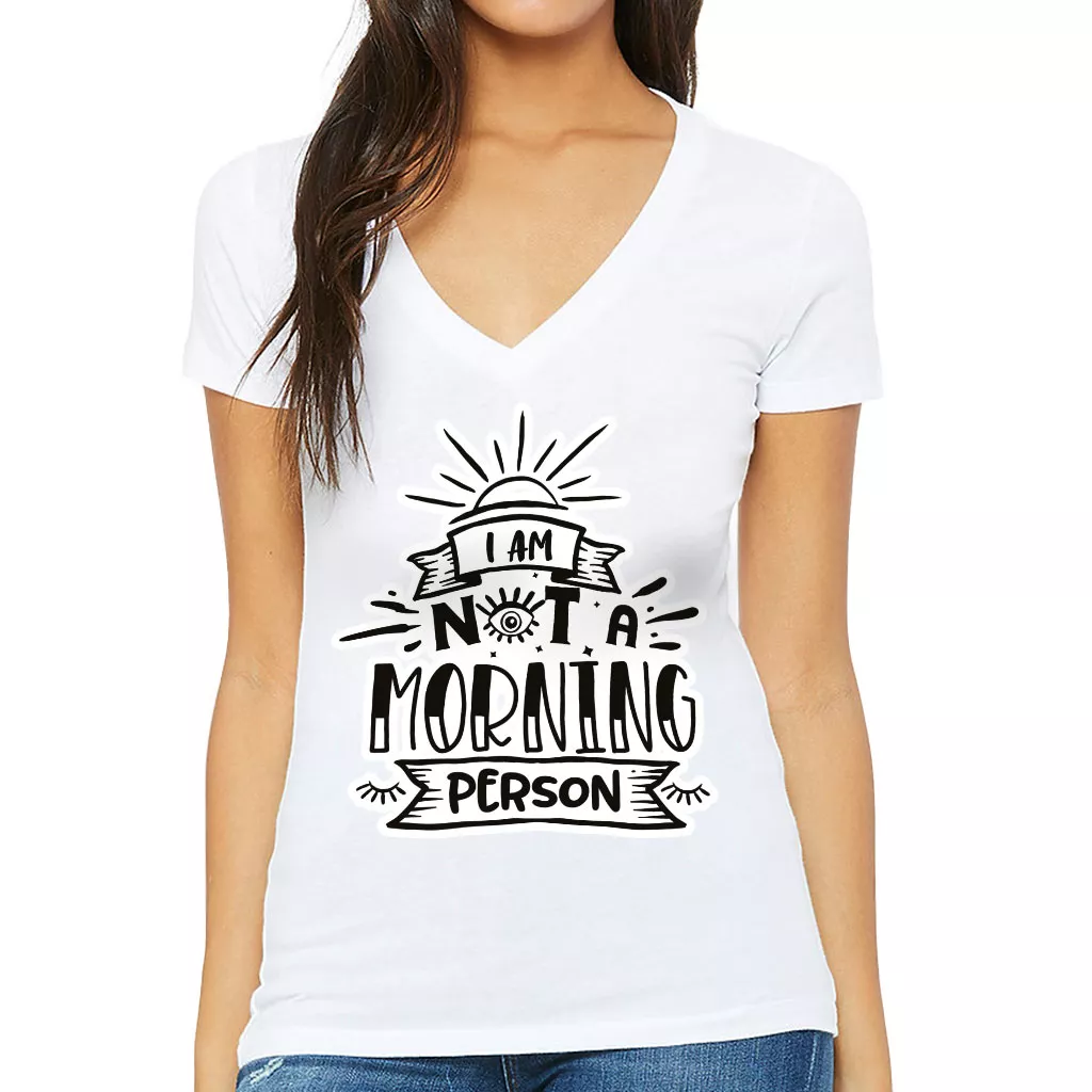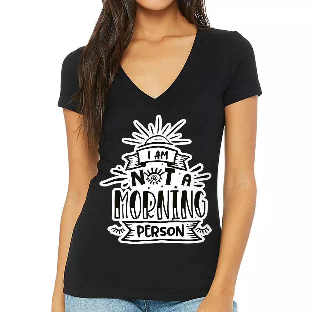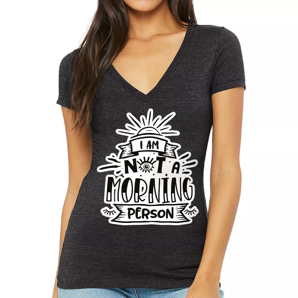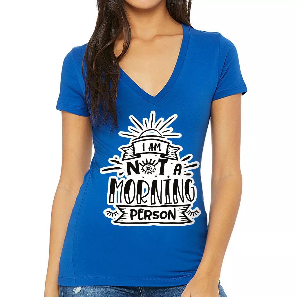 I am Not a Morning Person Women’s V-Neck T-Shirt – Trendy V-Neck Tee – Themed T-Shirt
