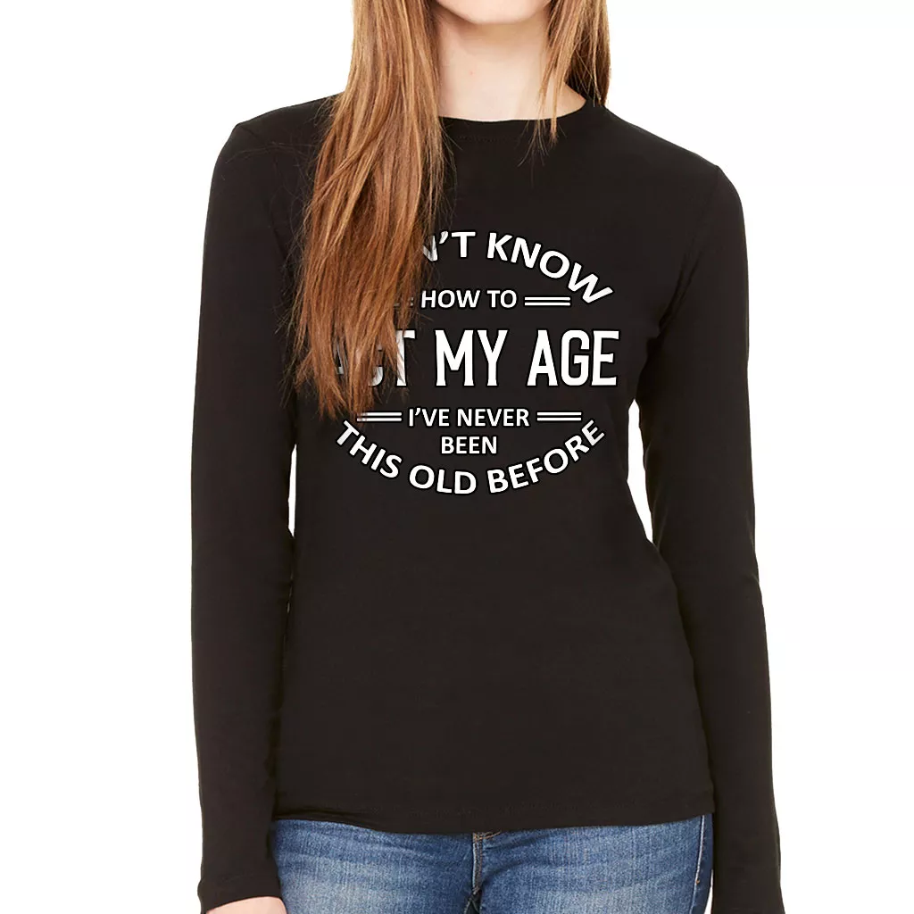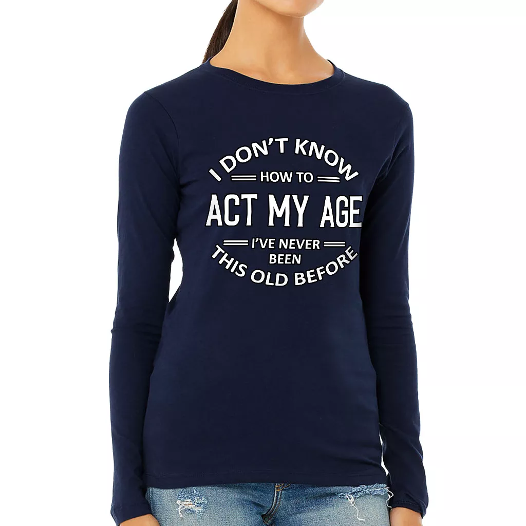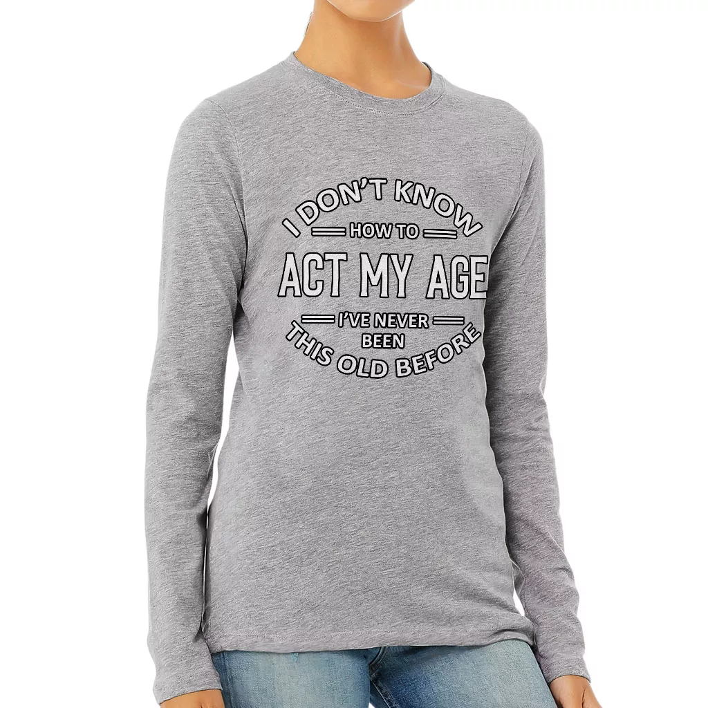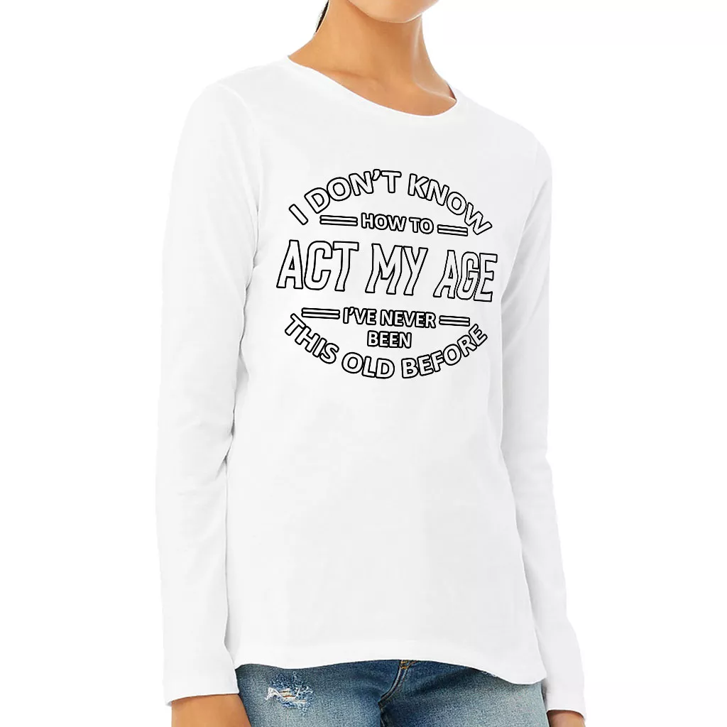 I Don’t Know How to Act My Age Women’s Long Sleeve T-Shirt – Sarcastic Long Sleeve Tee – Funny T-Shirt