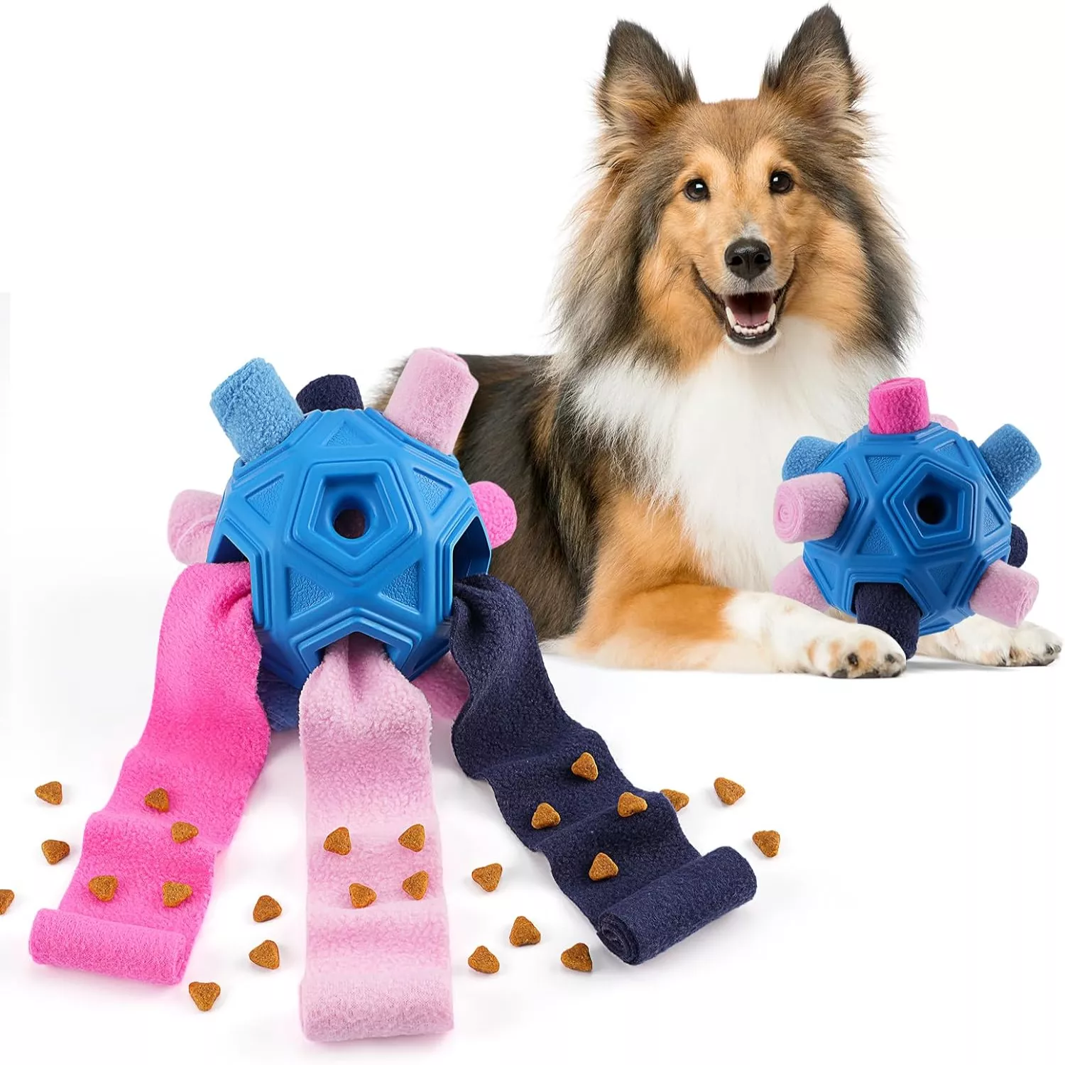 - 3-in-1 Design: Includes a snuffle ball, treat dispenser, and puzzle cloth strip for variety-packed play.
