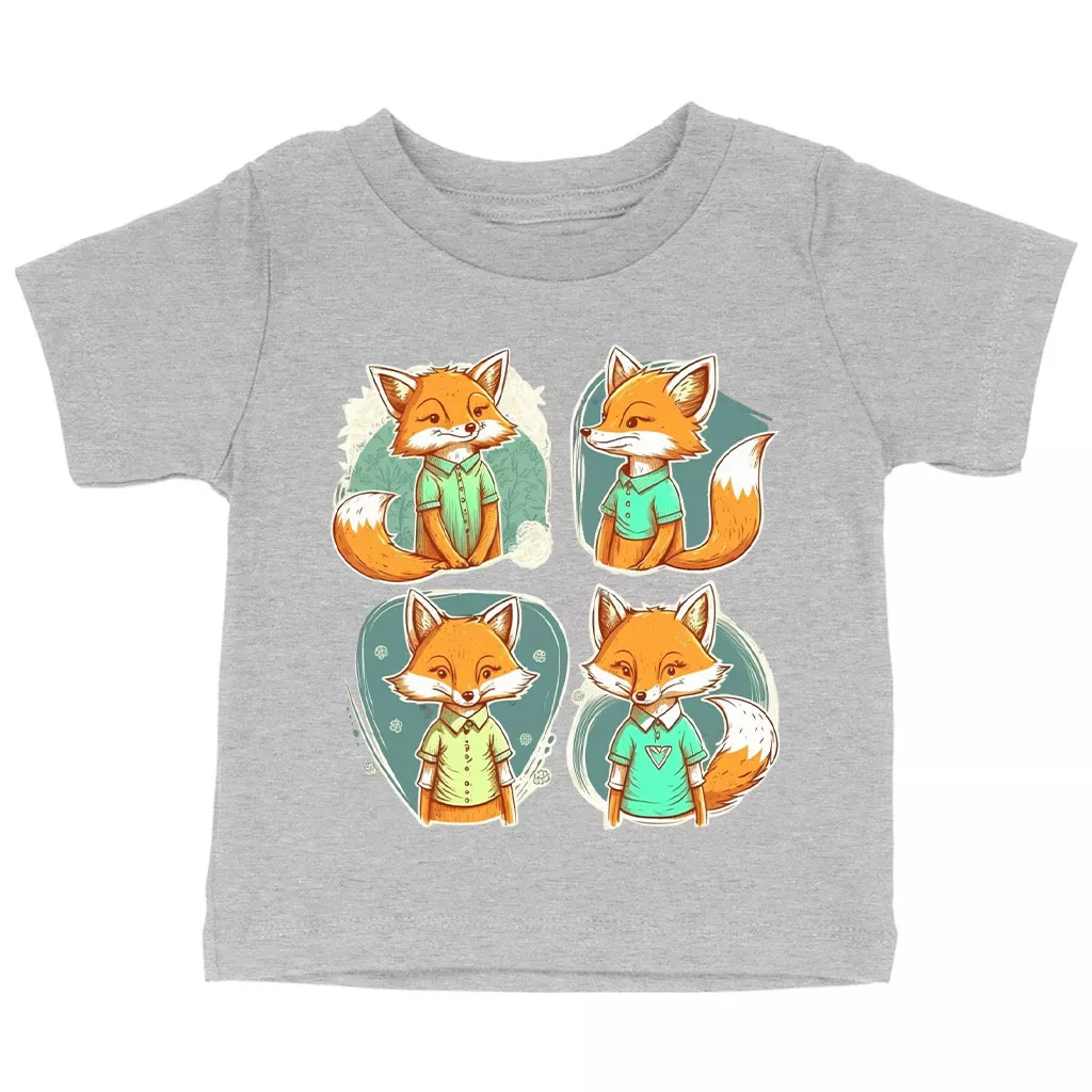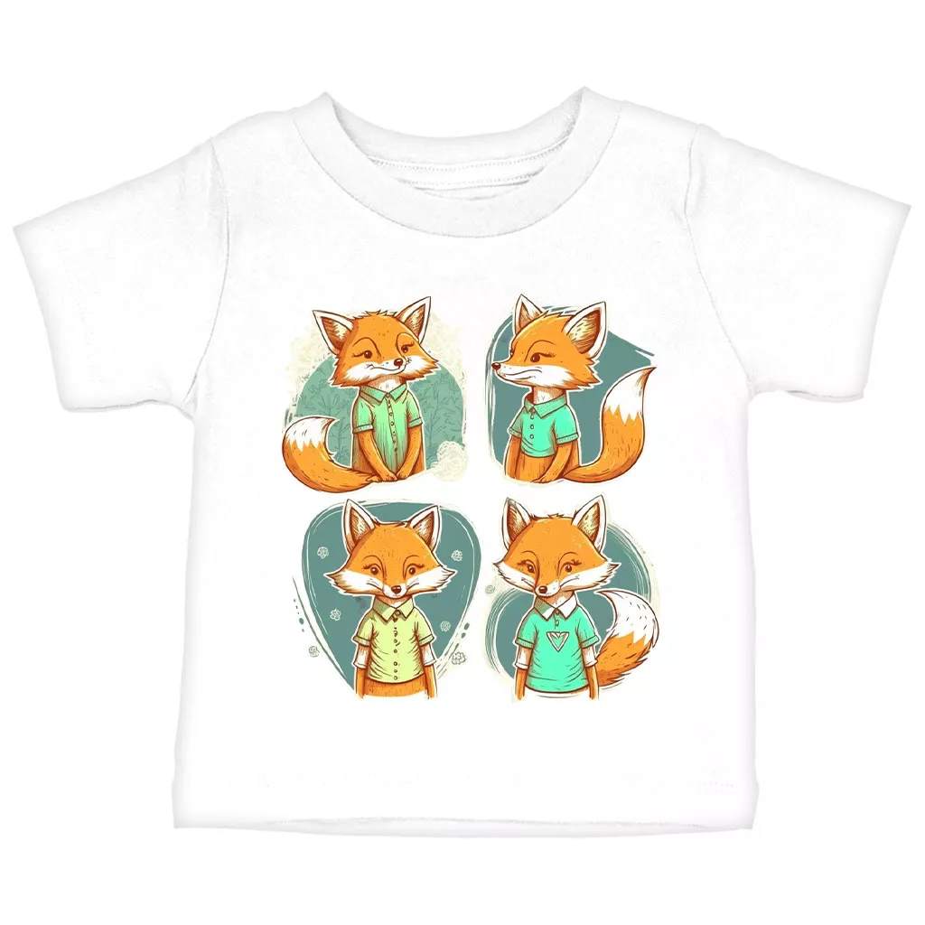 Kawaii Fox Baby Jersey T-Shirt – Cartoon Design Baby T-Shirt – Animal T-Shirt for Babies