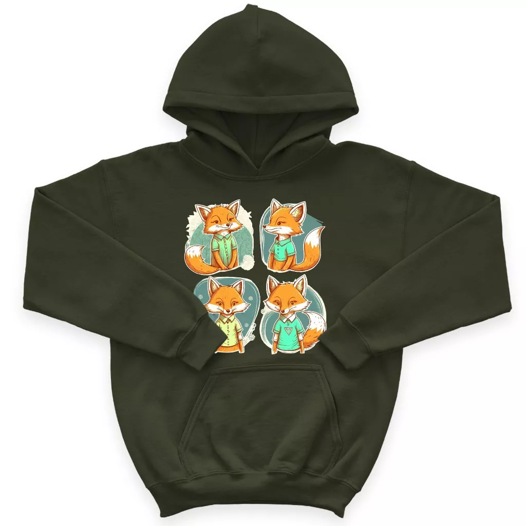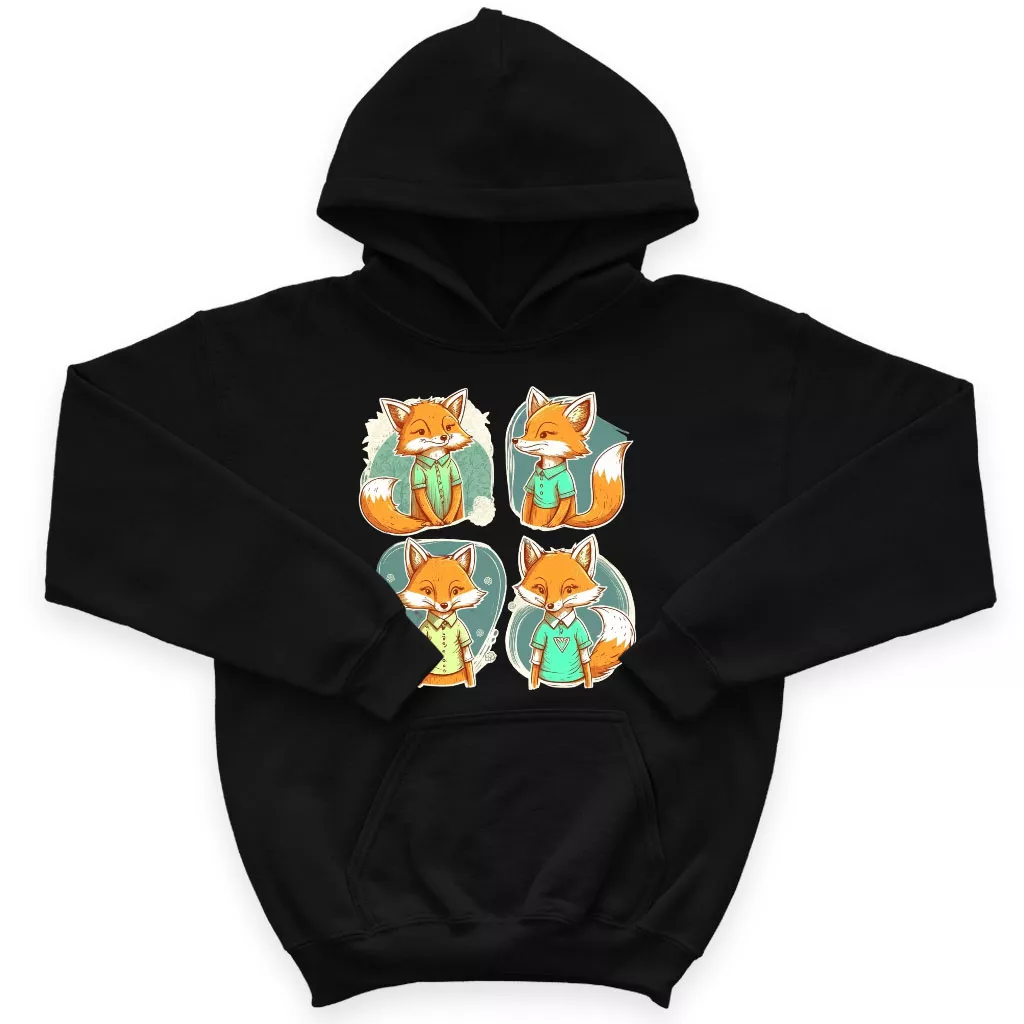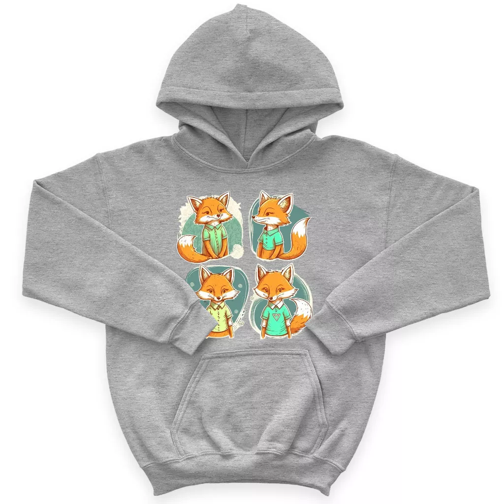 Kawaii Fox Kids’ Sponge Fleece Hoodie – Cartoon Design Kids’ Hoodie – Animal Hoodie for Kids