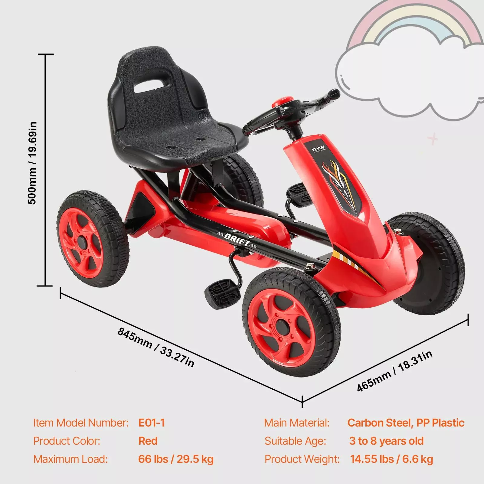 Let your child race into outdoor fun with this sturdy and exciting 4-wheel pedal go kart. Built to ignite imaginations and strengthen growing bodies, this ride-on racer is perfect for active boys and girls aged 3 to 8. With an easy-to-use design and safety-focused features, it’s the ultimate companion for backyard races, park adventures, or neighborhood explorations. No batteries needed—just pure pedal power and endless play.