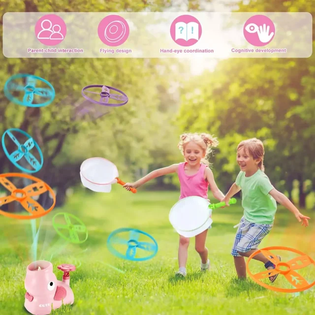 • Promotes Physical Activity: Kids can run, jump, and leap to catch the flying discs, fostering exercise and coordination.