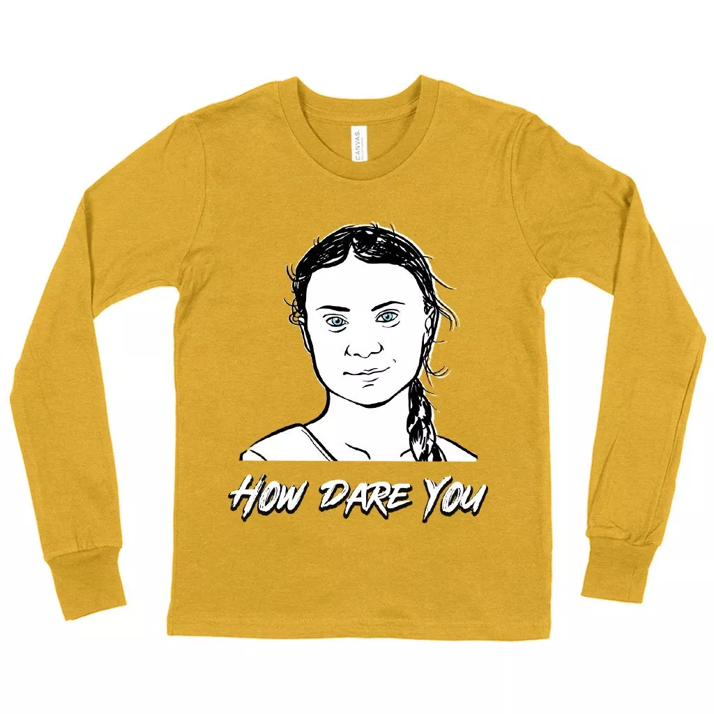 Kids’ How Dare You Long Sleeve T-Shirt – Greta Thunberg T-Shirt – Climate Change Tee Shirt