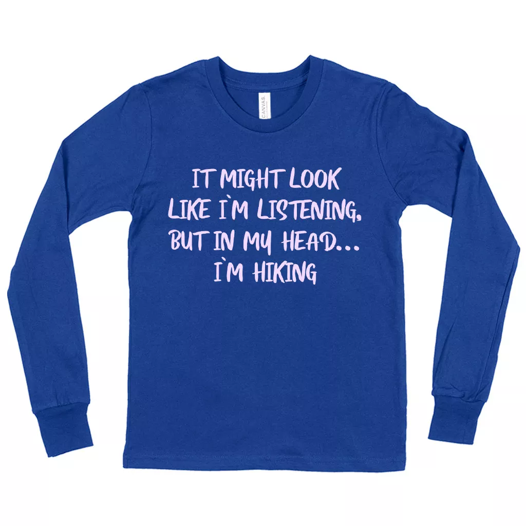 Kids’ I Might Look Like I’m Listening Long Sleeve T-Shirt – Hiking Boys’ T-Shirt – Sarcastic T-Shirt