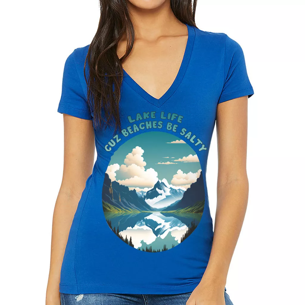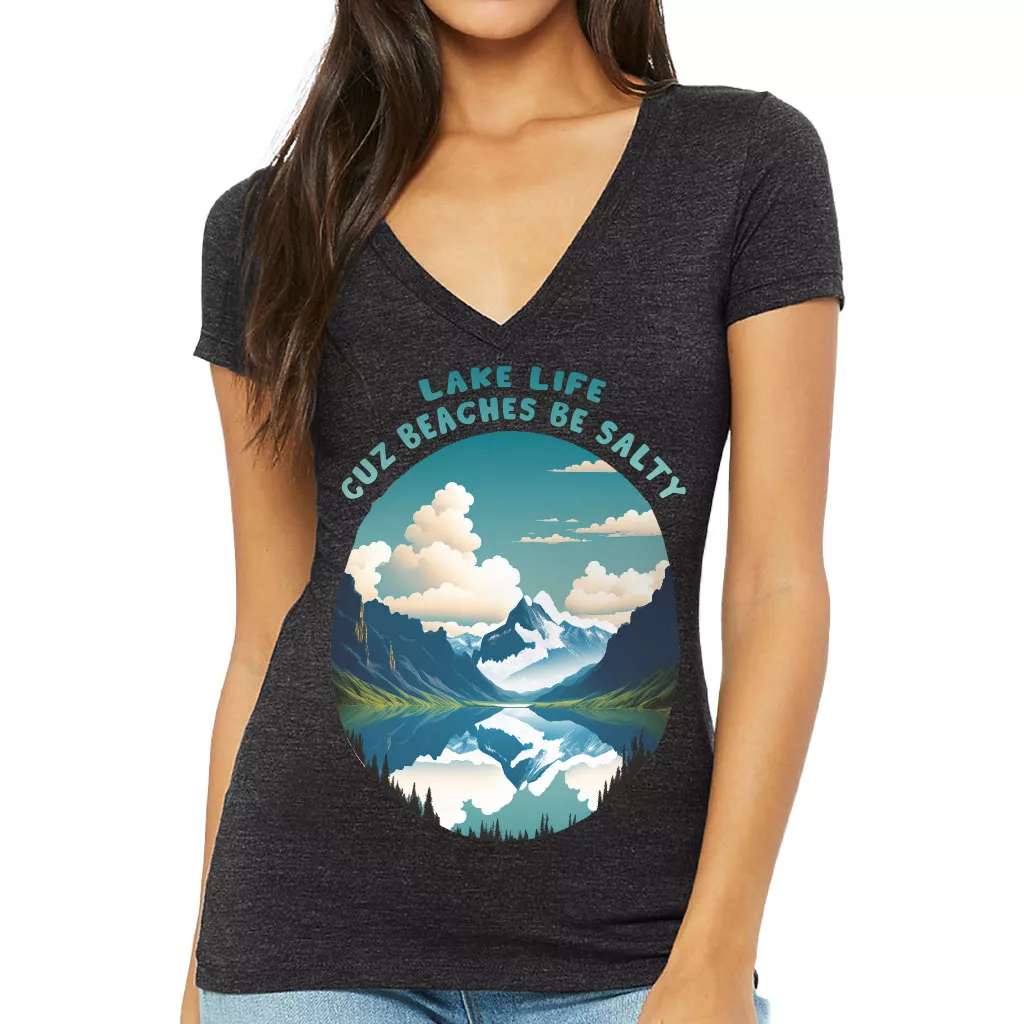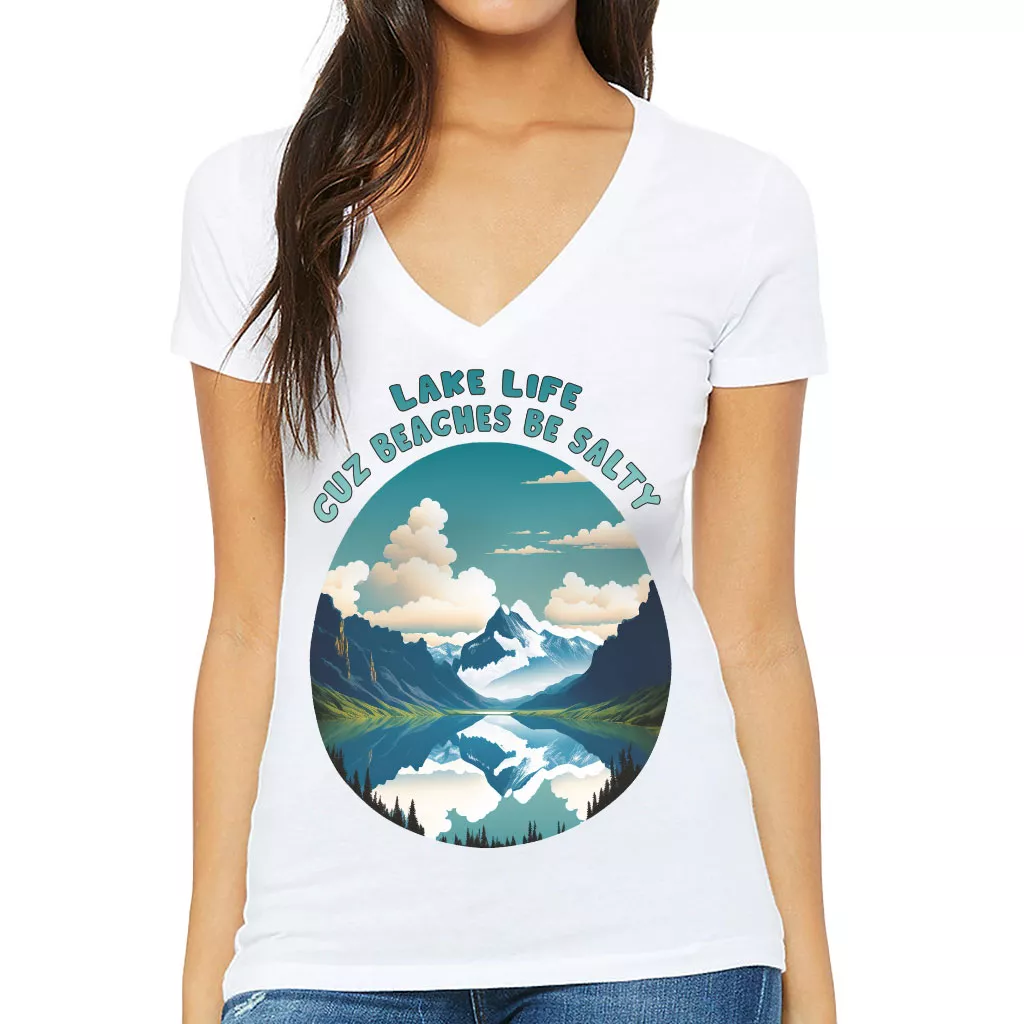 Lake Life Women’s V-Neck T-Shirt – Nature V-Neck Tee – Illustration T-Shirt