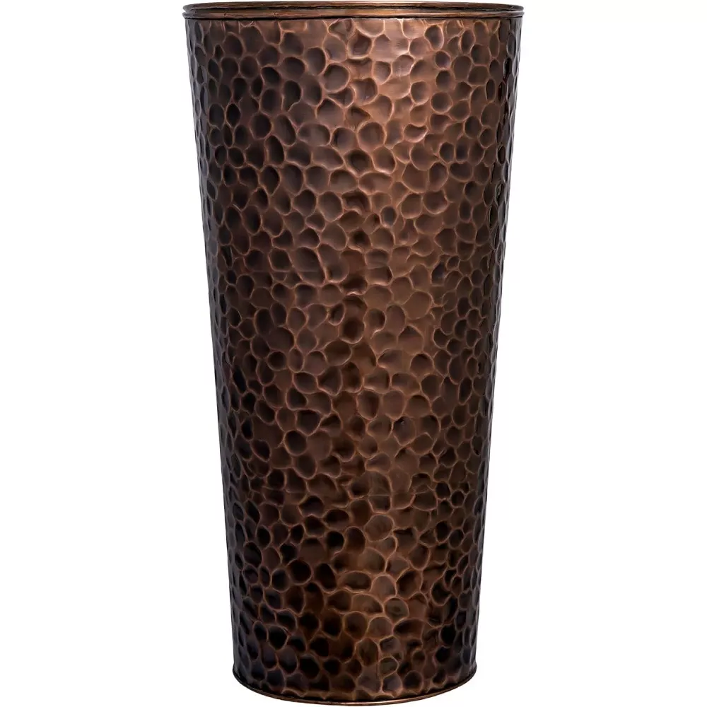 Add a striking touch of sophistication to your home or garden with this large tall copper planter pot. Expertly handcrafted from stainless steel with a hand-hammered antique copper finish, each planter is a unique work of art—no two pieces are alike. Standing 28 inches tall and 14 inches wide at the top, this planter beautifully blends the warmth of copper tones with durable construction, making it a stunning focal point for any indoor or outdoor space.