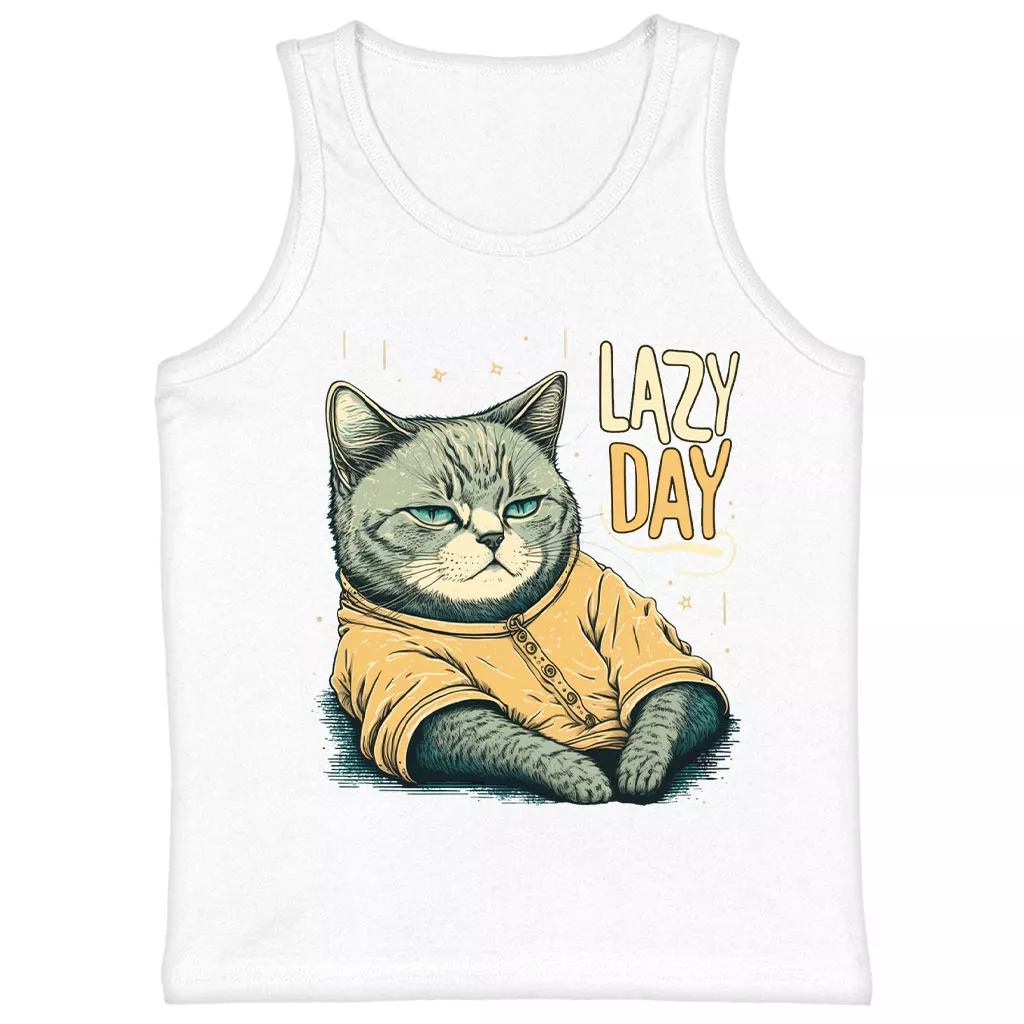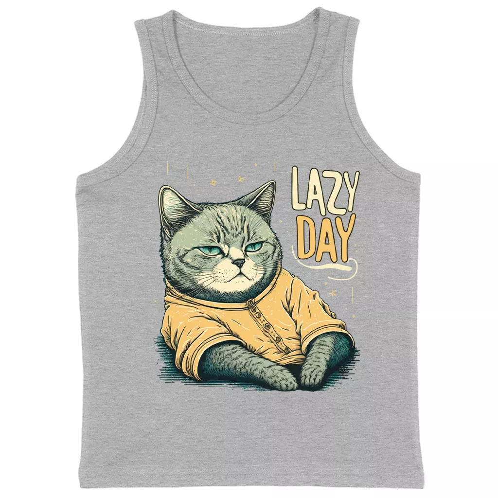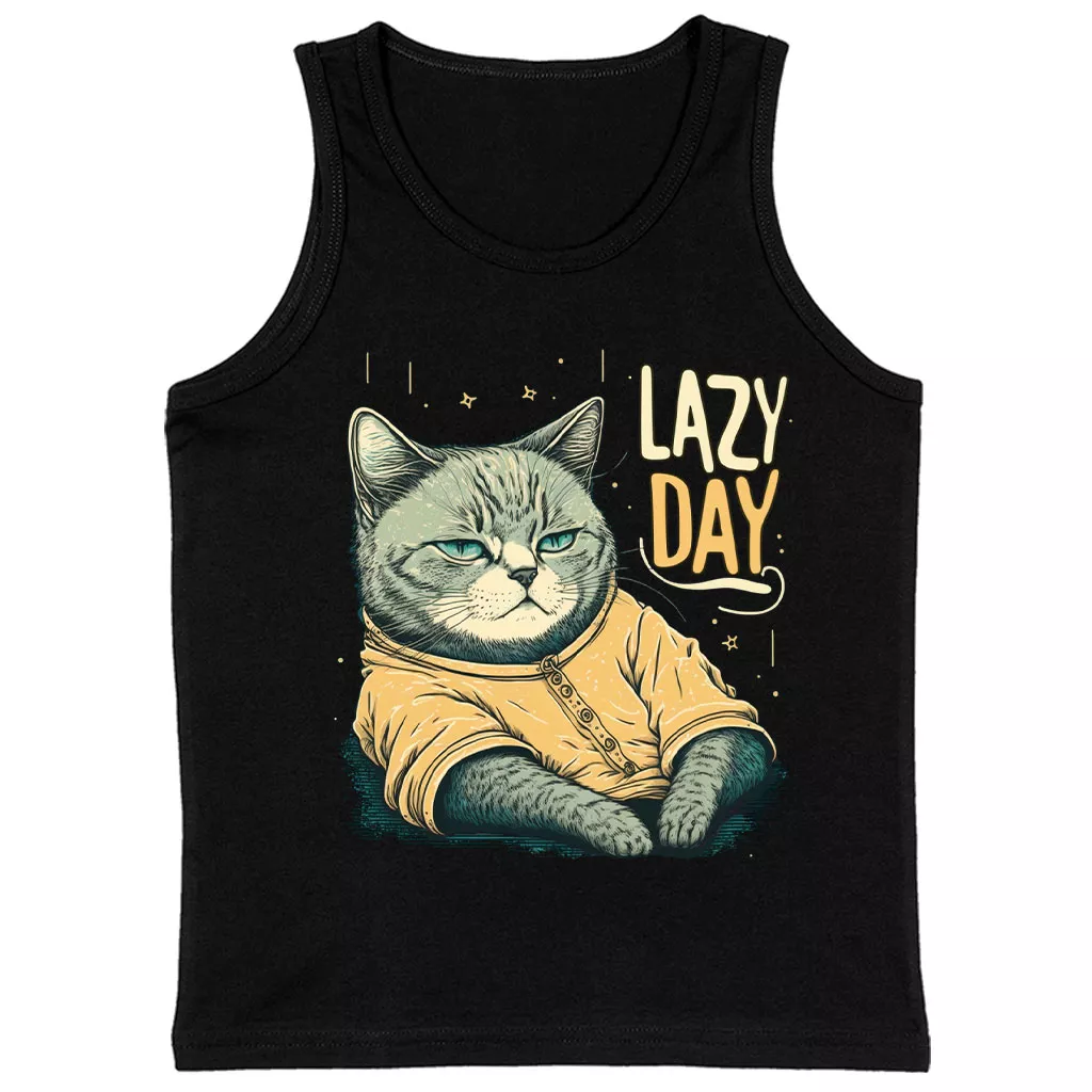 Lazy Day Kids’ Jersey Tank – Funny Cat Sleeveless T-Shirt – Graphic Kids’ Tank Top