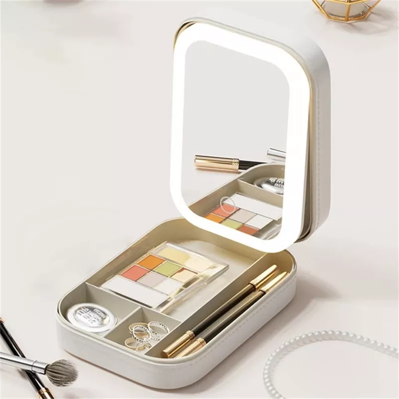 LED Makeup Case with Mirror – Portable Cosmetic Storage Box with Light