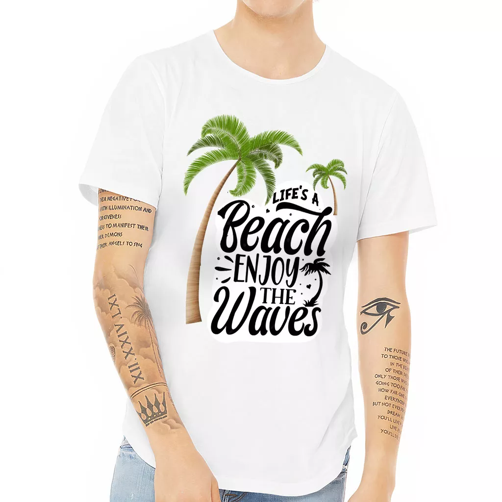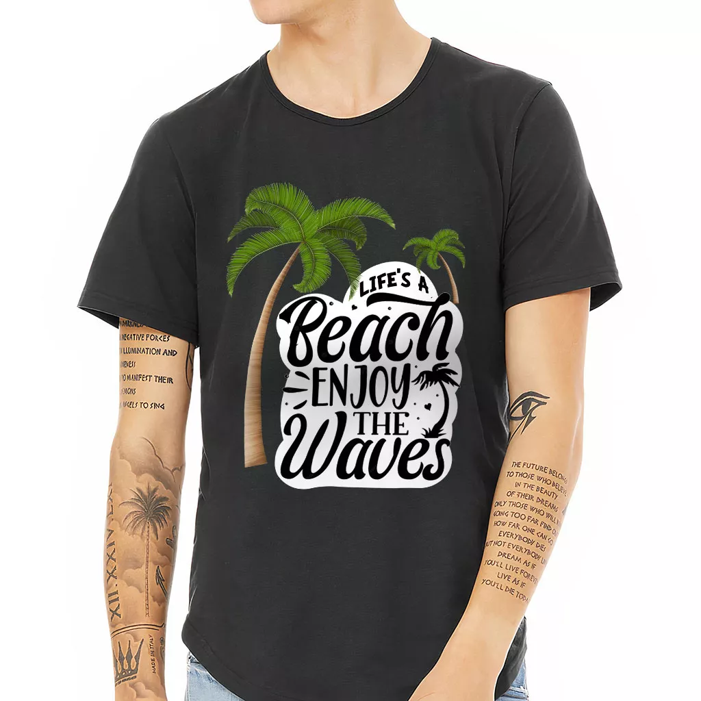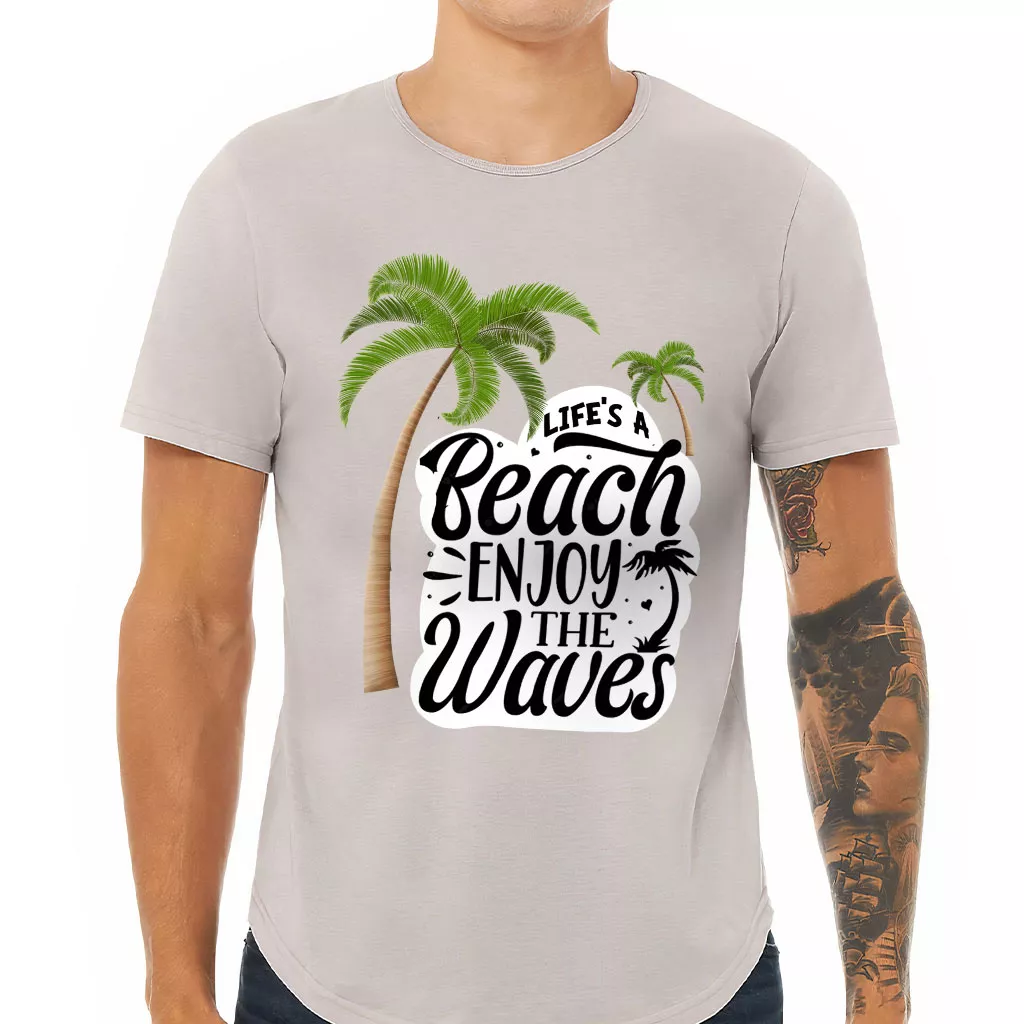 Life’s a Beach Enjoy the Waves Curved Hem T-Shirt – Cute T-Shirt – Illustration Curved Hem Tee