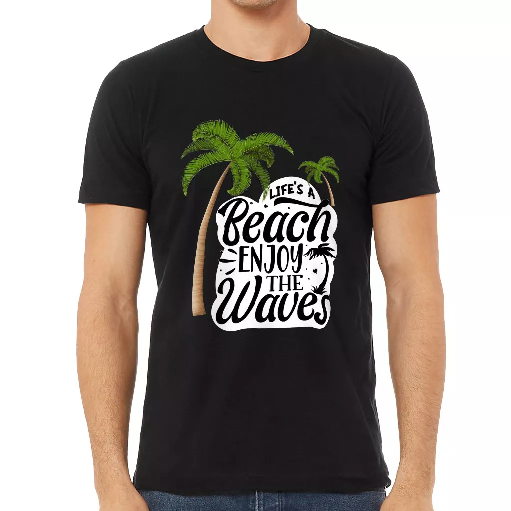 The cotton material feels great against your skin and is very light, feels good on the body, and has good air permeability. The material of Life’s a Beach Enjoy the Waves Short Sleeve T-Shirt makes you feel soft and comfortable. No fading, no pilling!