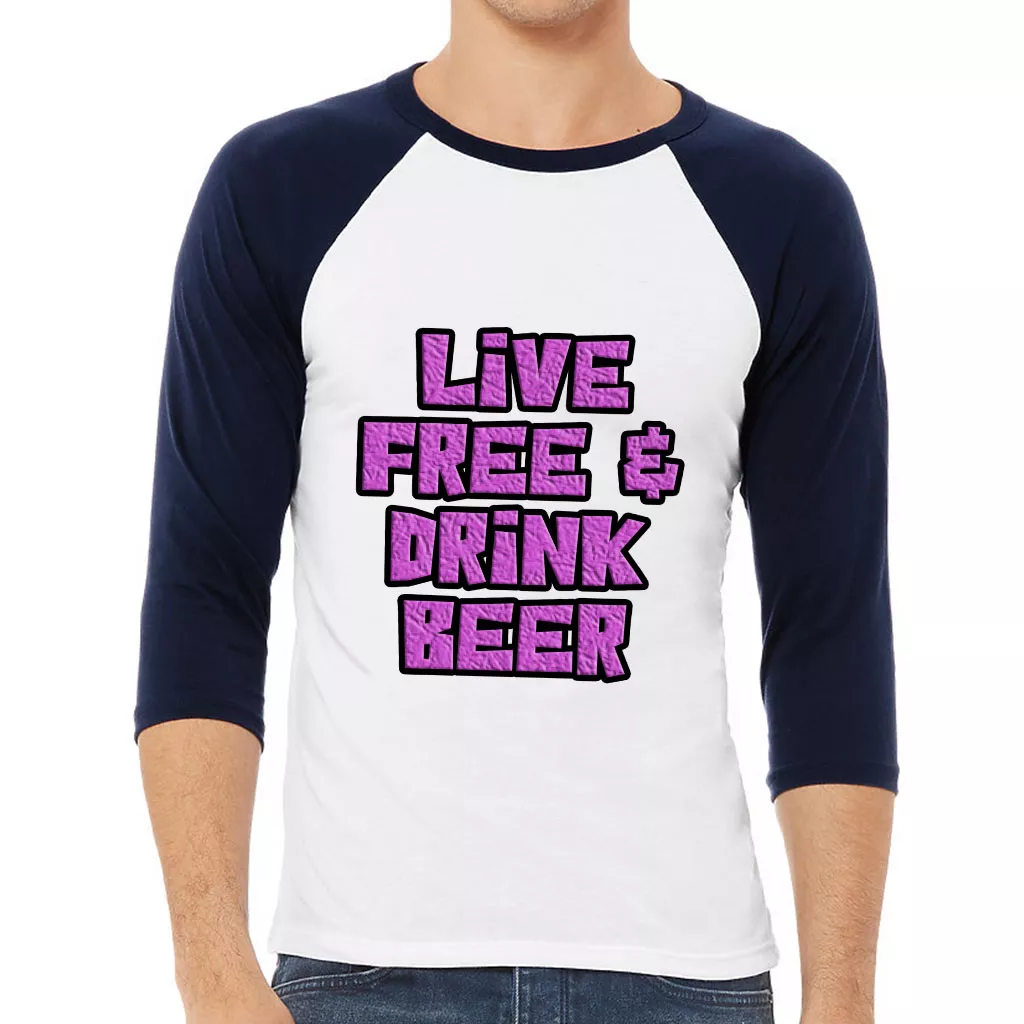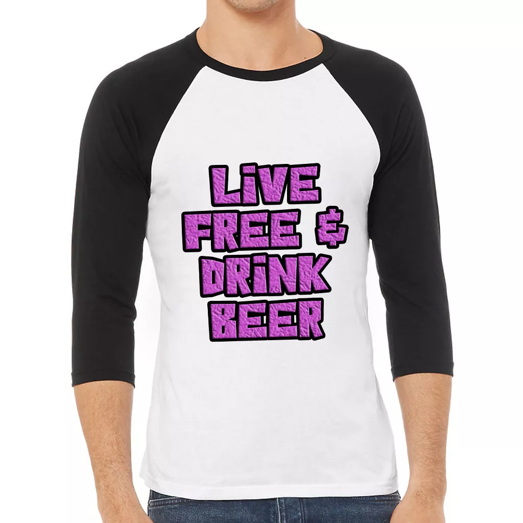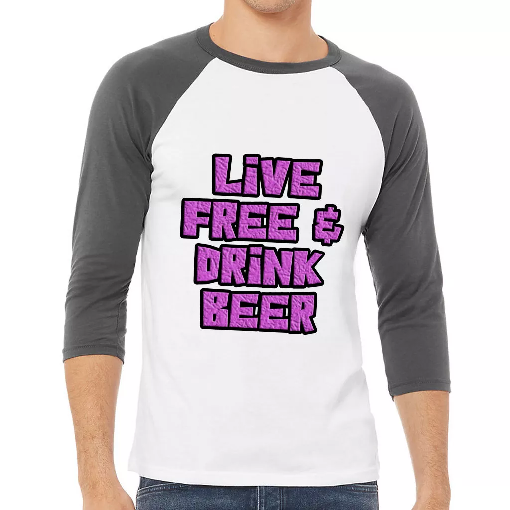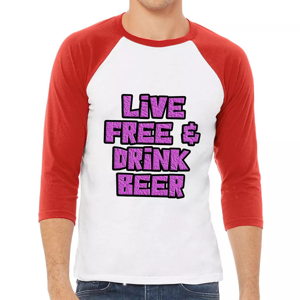 Live Free Baseball T-Shirt – Drink Beer T-Shirt – Cool Baseball Tee