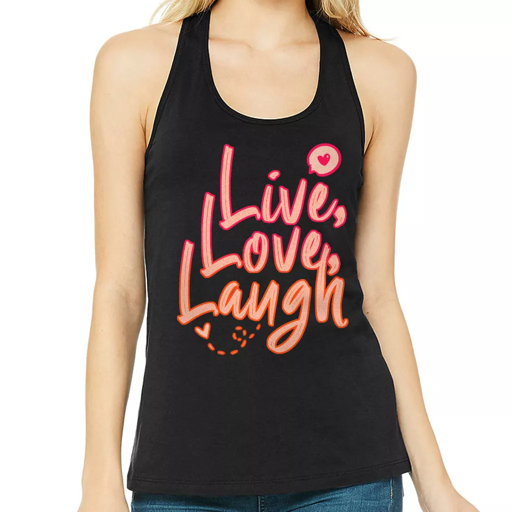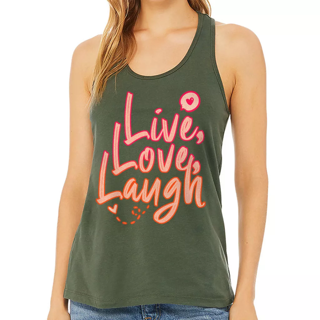 Live Laugh Love Women’s Racerback Tank – Cute Design Tank Top – Printed Workout Tank
