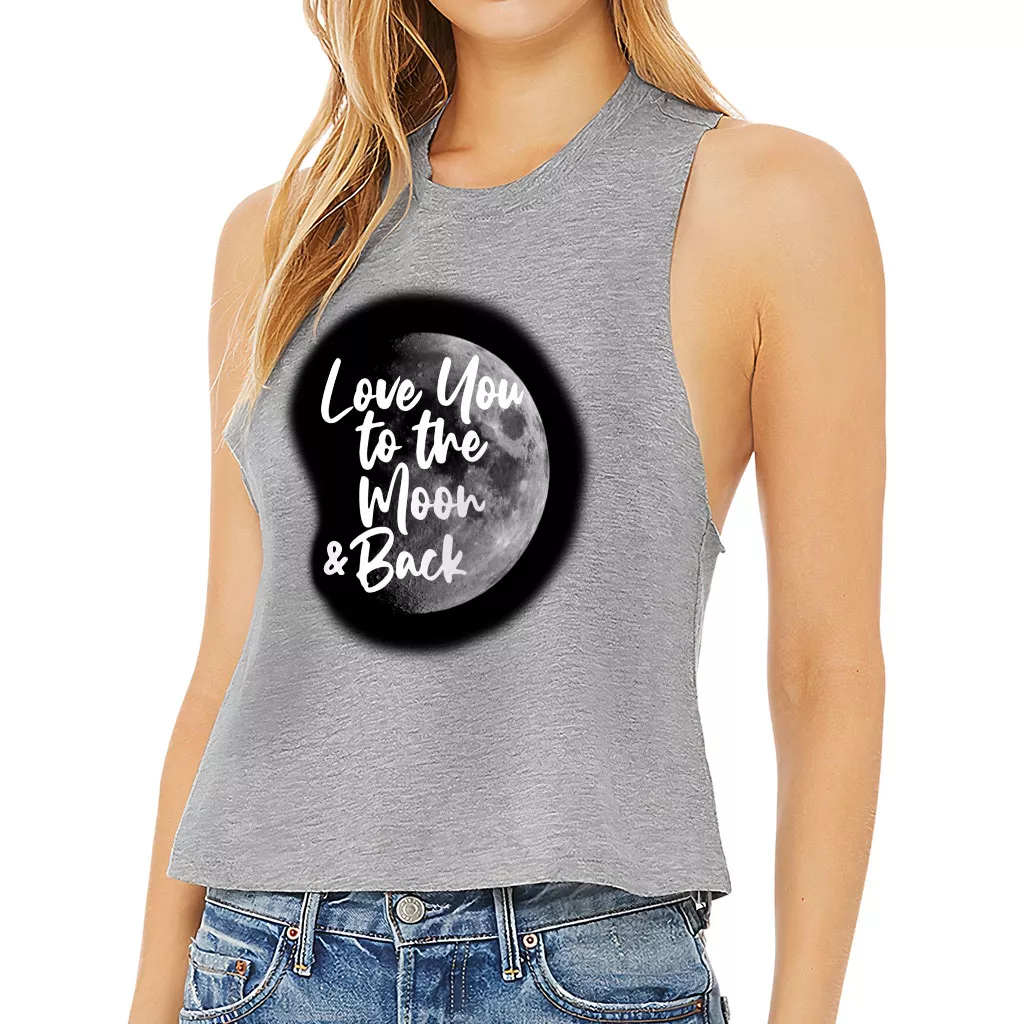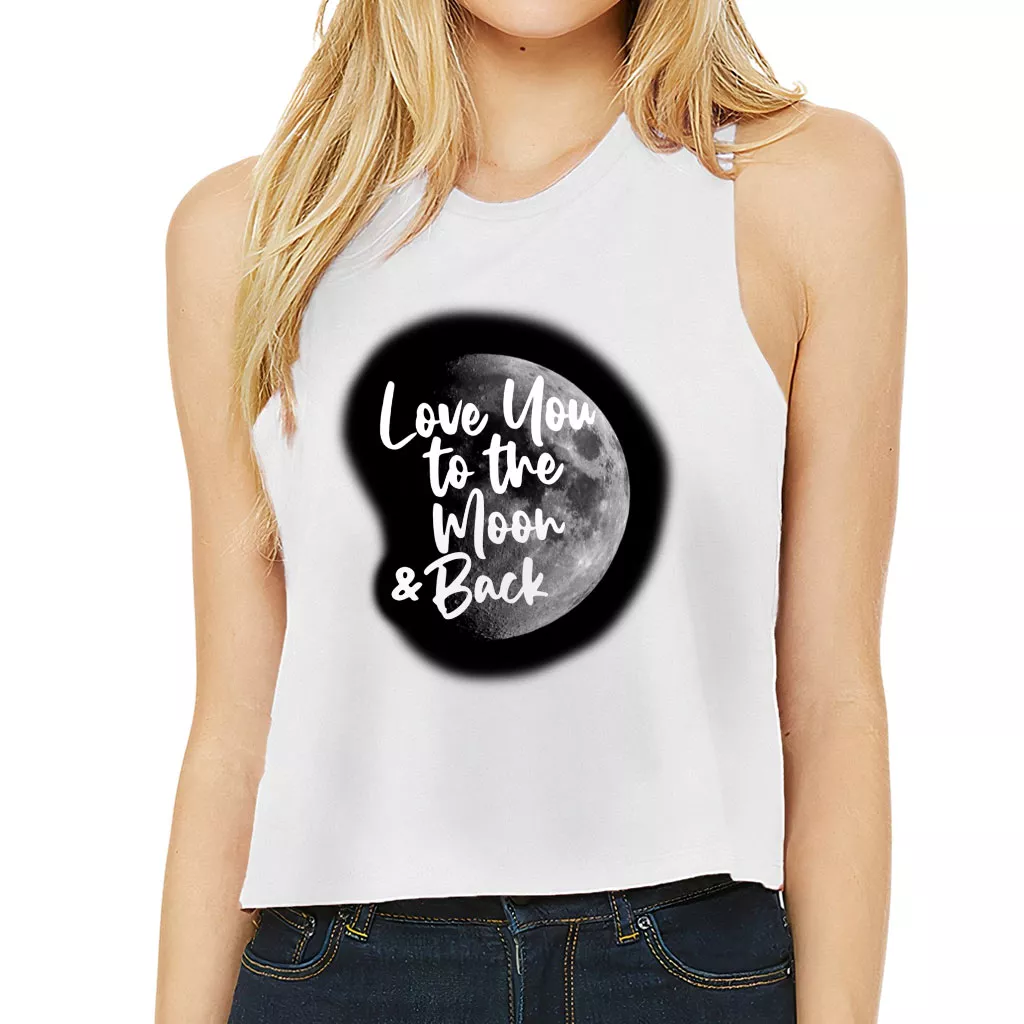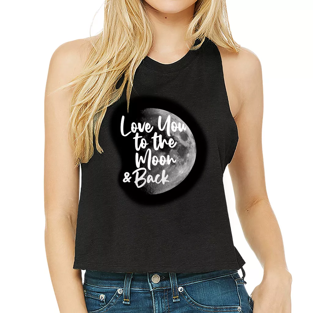 Love You to the Moon and Back Racerback Cropped Tank – Moon Graphic Women’s Tank – Cool Trendy Tank Top