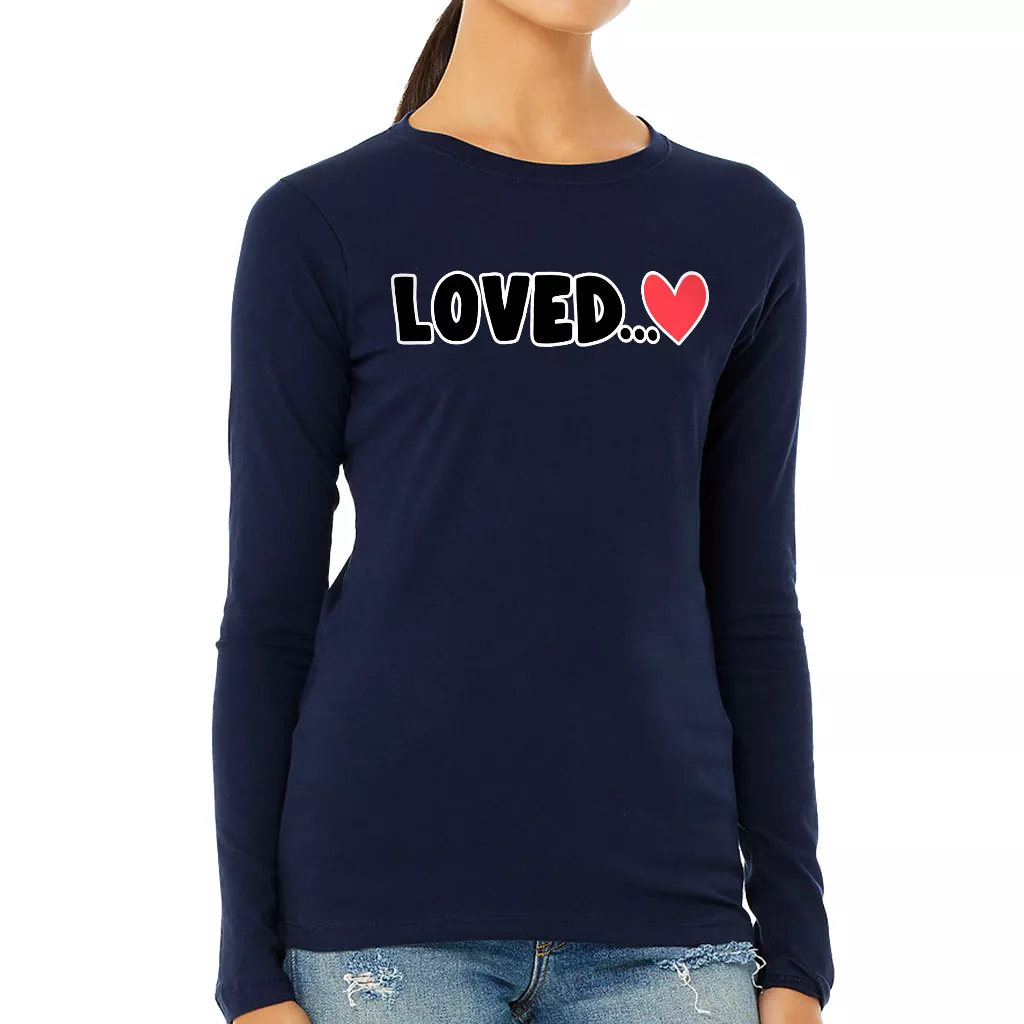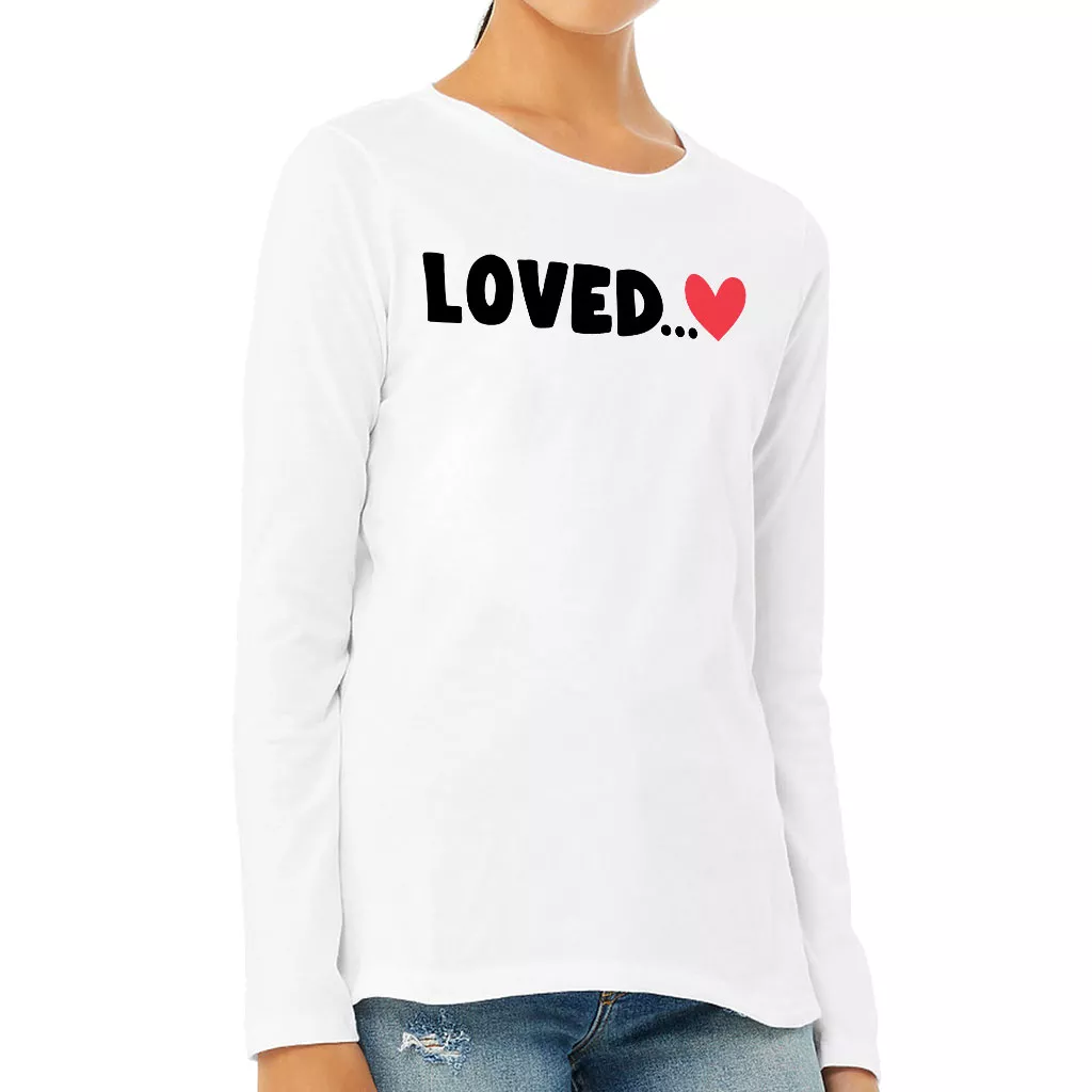 Loved Women’s Long Sleeve T-Shirt – Cute Heart Long Sleeve Tee – Themed T-Shirt