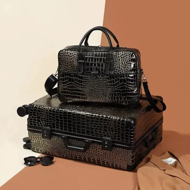 Embark on your next journey with our Luxurious Crocodile Print Travel Luggage & Handbag Set. Designed for the discerning traveler, this set combines the elegance of crocodile print with the resilience of reinforced aluminum frames and PVC material, ensuring your belongings are securely encased in a stylish yet durable shell. Whether you’re jet-setting across the globe or heading out on a business trip, our luggage set promises to be your perfect travel companion.