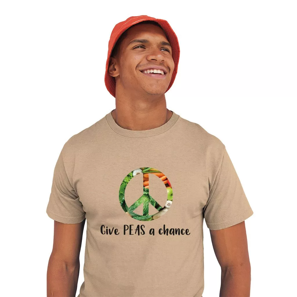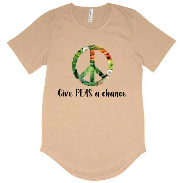 Men’s Give Peas a Chance Funny Vegan T-Shirt with Curved Hem – Vegan Print T-Shirt – Vegetarian Funny T-Shirts