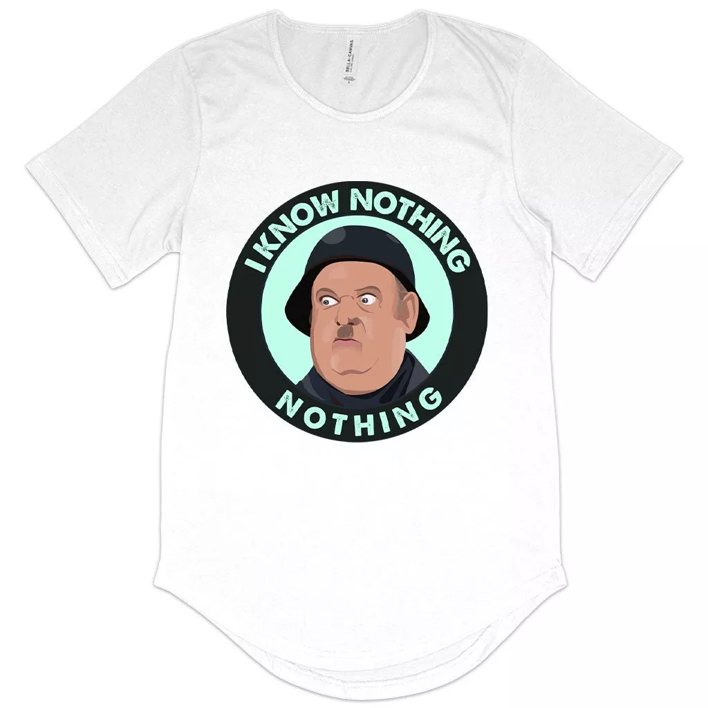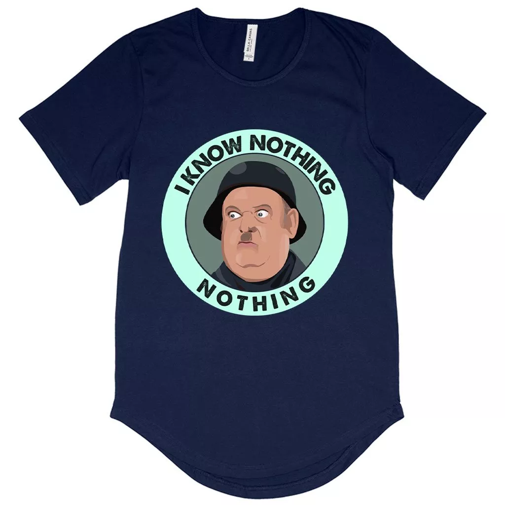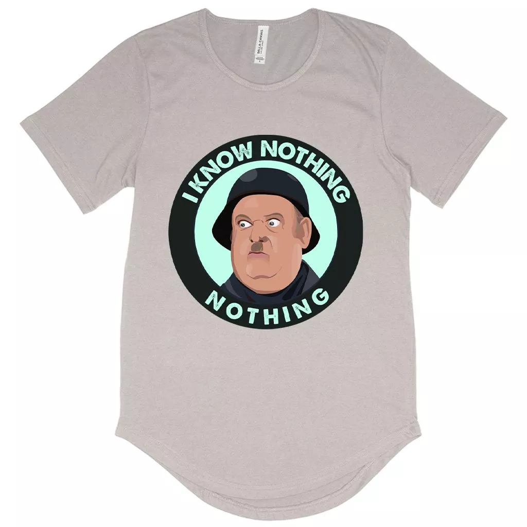 Men’s I Know Nothing T-Shirt with Curved Hem – Hogan’s Heroes T-Shirts