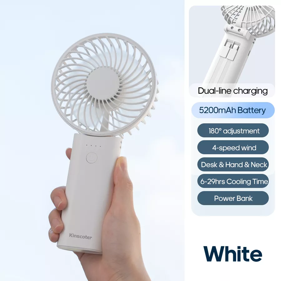 Mini Foldable Handheld Fan with Power Bank – 5200mAh Rechargeable Cooling Fan