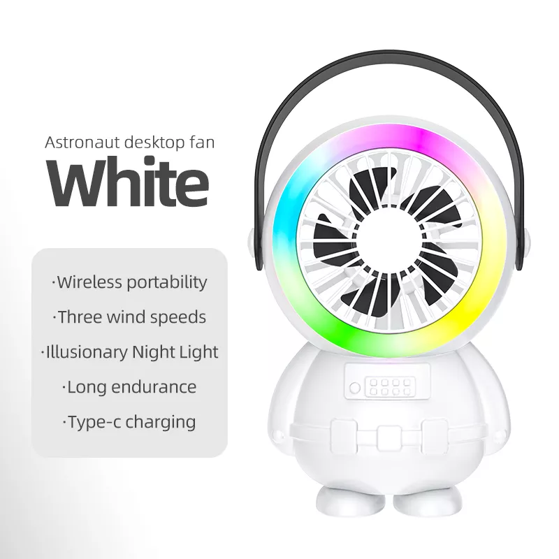 Meet the cutest way to stay cool on the go – Mini Spaceman RGB Handheld Fan. This colorful, lightweight fan is designed for both fun and function. With a unique spaceman-inspired design and vibrant RGB lighting, it’s more than just a fan – it’s a statement accessory. Whether you’re heading to school, commuting, traveling, or just relaxing at home, this mini fan delivers a refreshing breeze with a splash of personality.