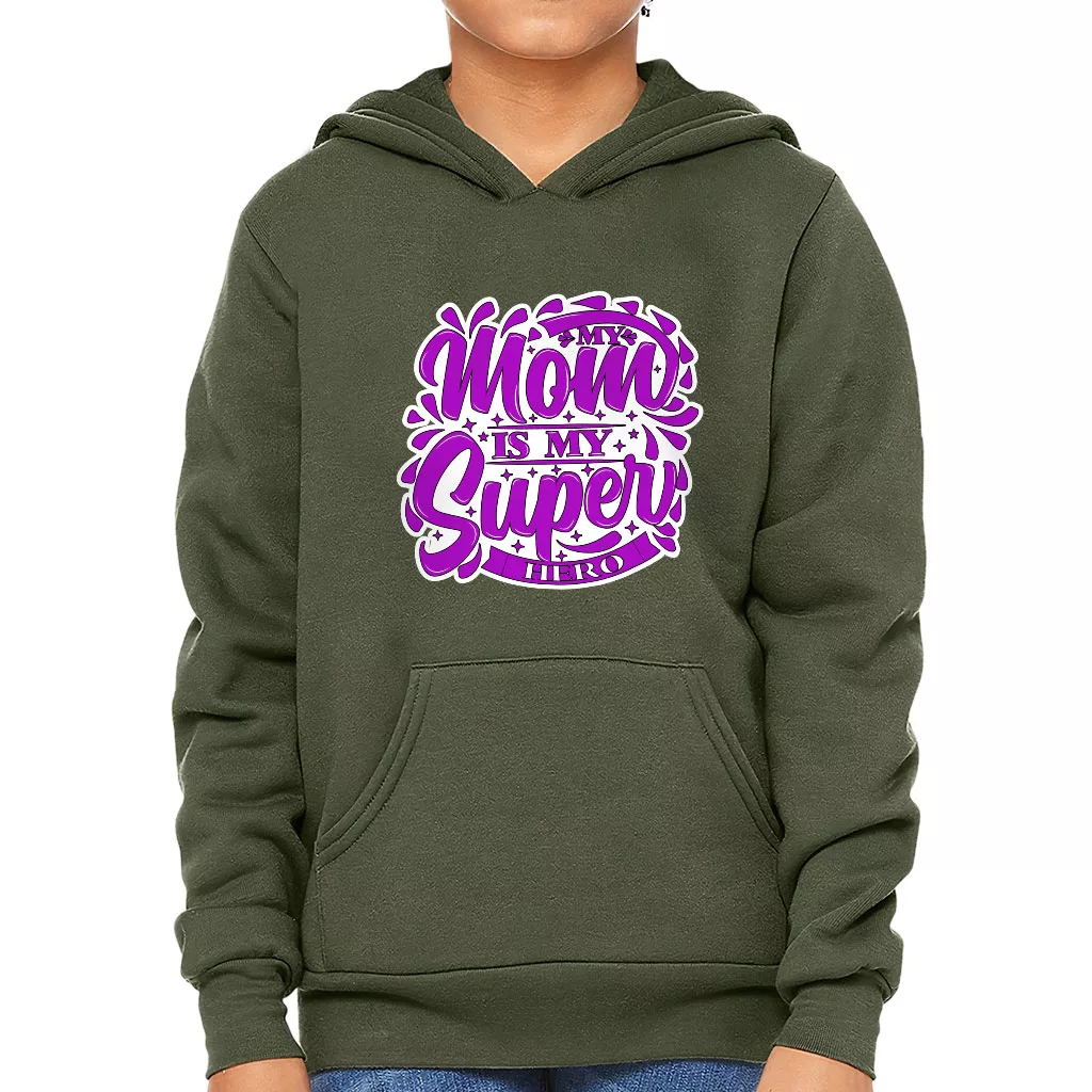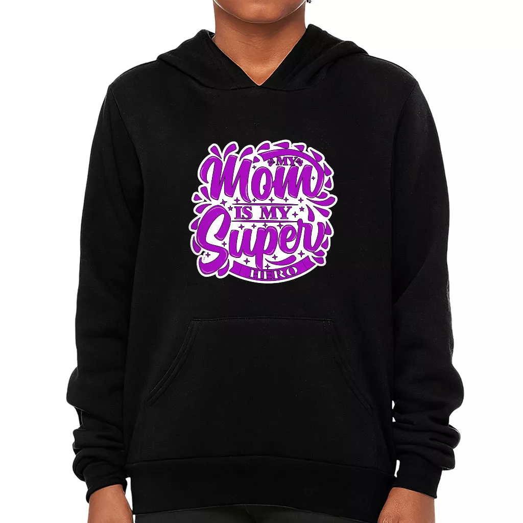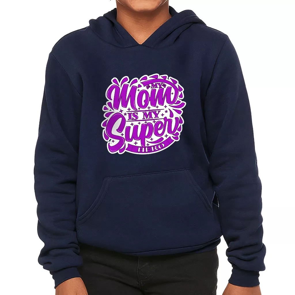 My Mom is My Superhero Kids’ Sponge Fleece Hoodie is no ordinary piece of clothing. Its top-stitched hood and