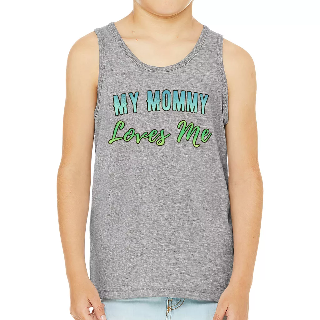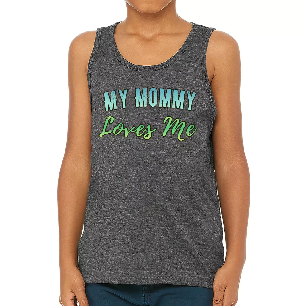 My Mom Loves Me Kids’ Jersey Tank – Best Trendy Sleeveless T-Shirt – Themed Kids’ Tank Top