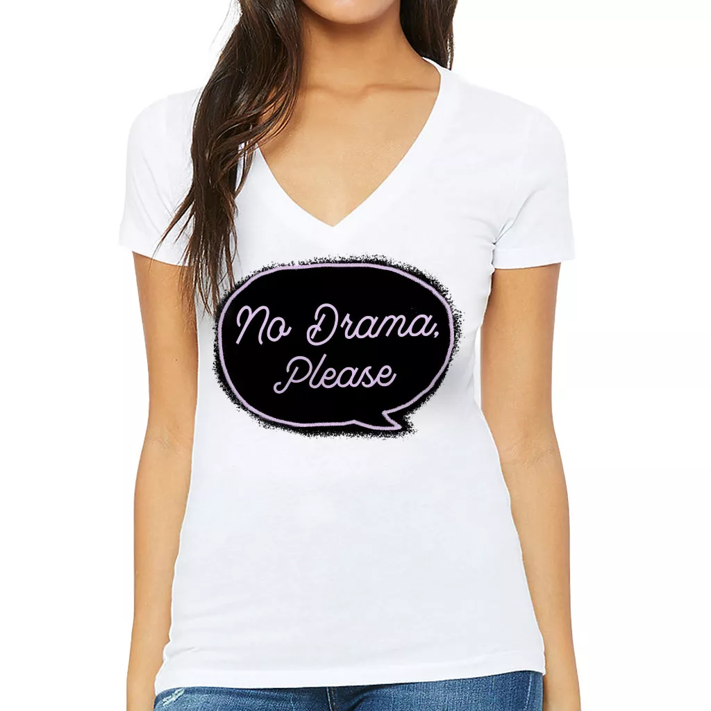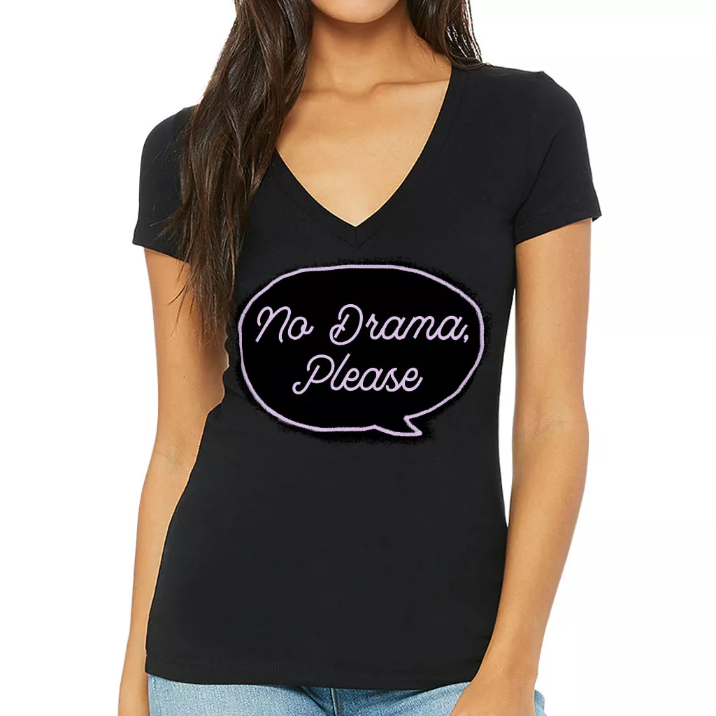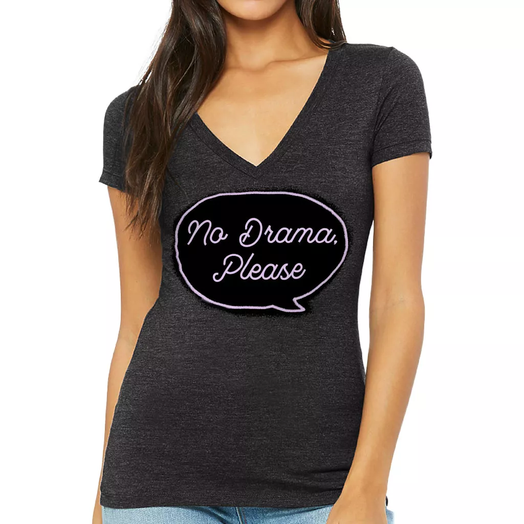 No Drama Please Women’s V-Neck T-Shirt – Cool V-Neck Tee – Trendy T-Shirt