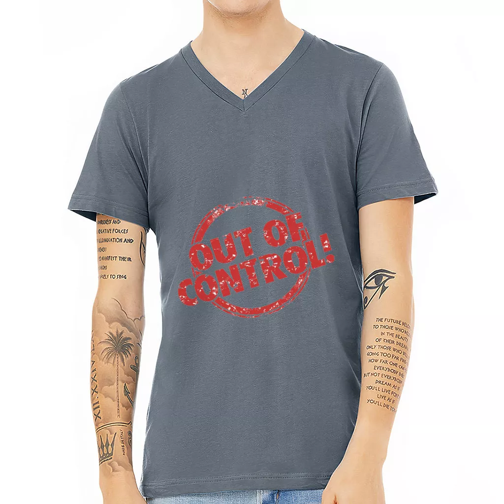 Out Of Control V-Neck T-Shirt – Printed T-Shirt – Cool Print V-Neck Tee