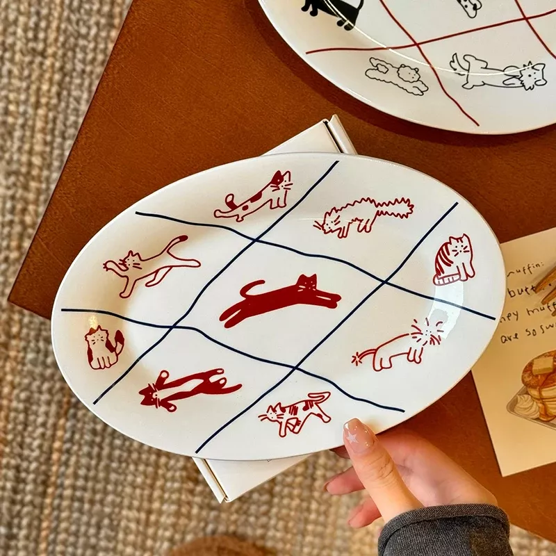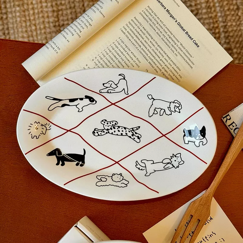 Add a dash of charm to your dining table with this delightful Oval Ceramic Cartoon Kitten & Puppy Plate. Featuring a playful Korean-style design with cute kittens and puppies against a vintage-inspired grid background, this plate is perfect for anyone who loves charming, whimsical tableware. Whether you’re serving breakfast, desserts, snacks, or even a cozy meal for one, this dish brings joy to every bite.