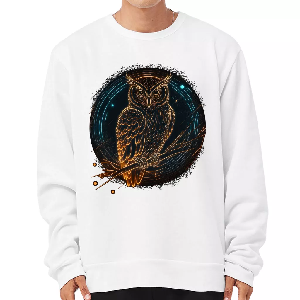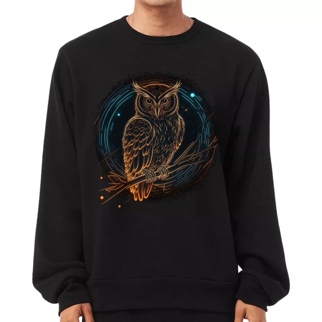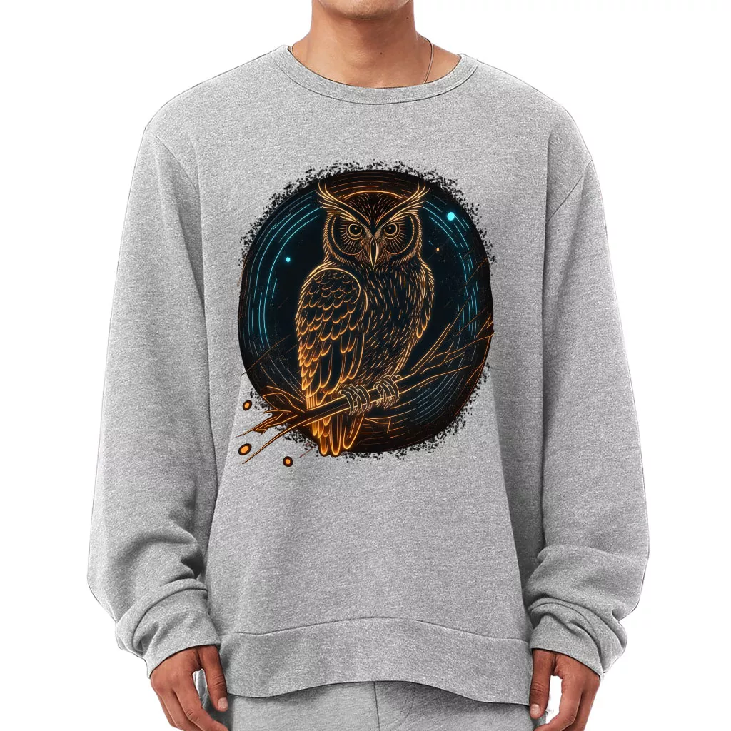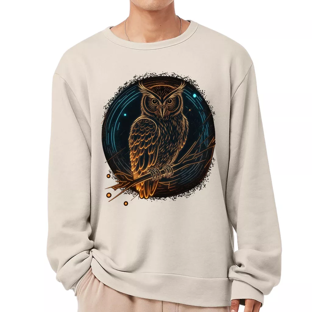 Owl Graphic Sponge Fleece Sweatshirt – Cool Classic Sweatshirt – Illustration Sweatshirt