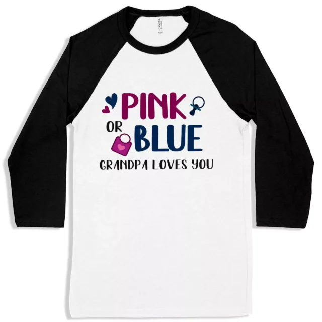 Pink or Blue Your Grandpa Loves You Baseball T-Shirt – Gender Reveal T-Shirts for Grandparents – T-Shirts for Grandpa