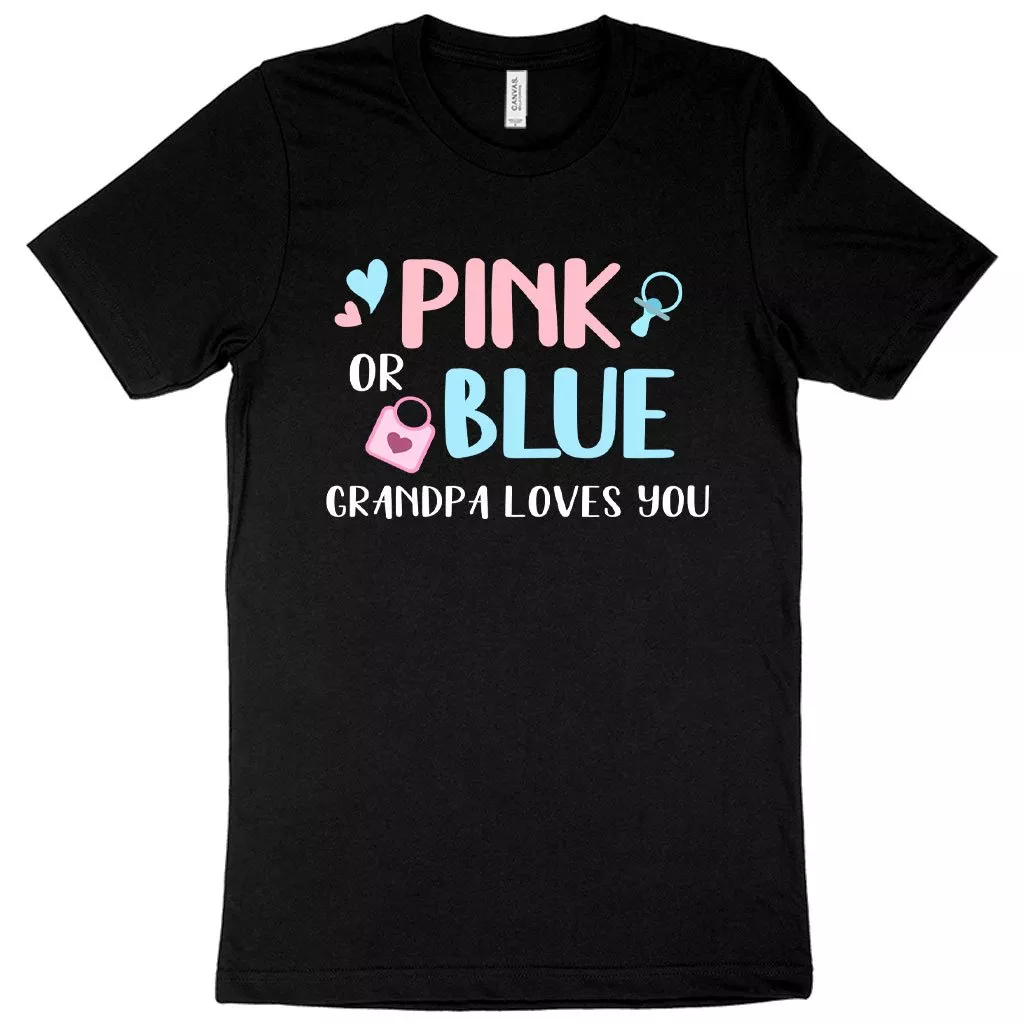 Pink or Blue Your Grandpa Loves You T-Shirt – Gender Reveal T-Shirts for Grandparents – T-Shirts for Grandpa