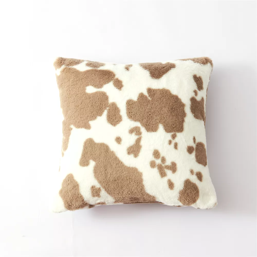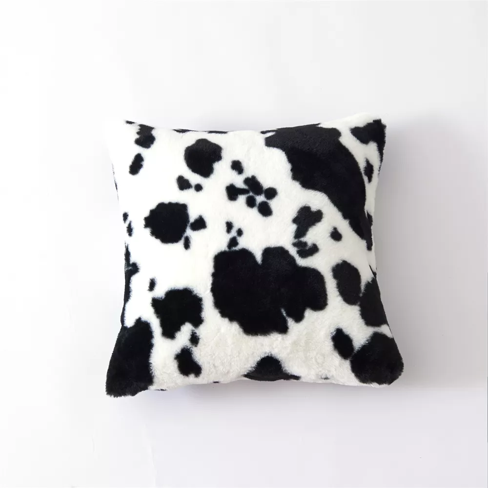 Plush Cow Print Cushion Cover