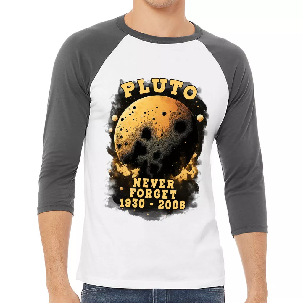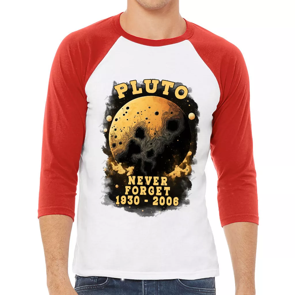 Pluto Never Forget Baseball T-Shirt – Space T-Shirt – Trendy Baseball Tee